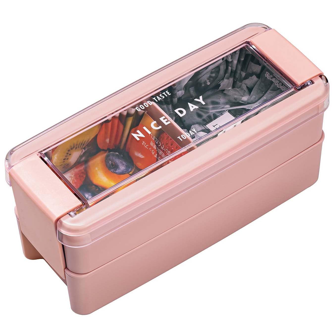 岩崎工業 弁当箱 イージーケア ランチボックス 2段(箸つき) 680ml ピンク フタ・パッキンが一体で洗いやすい Ag 抗菌 防汚 レンジ対応 食洗機対応 B-1488 PI