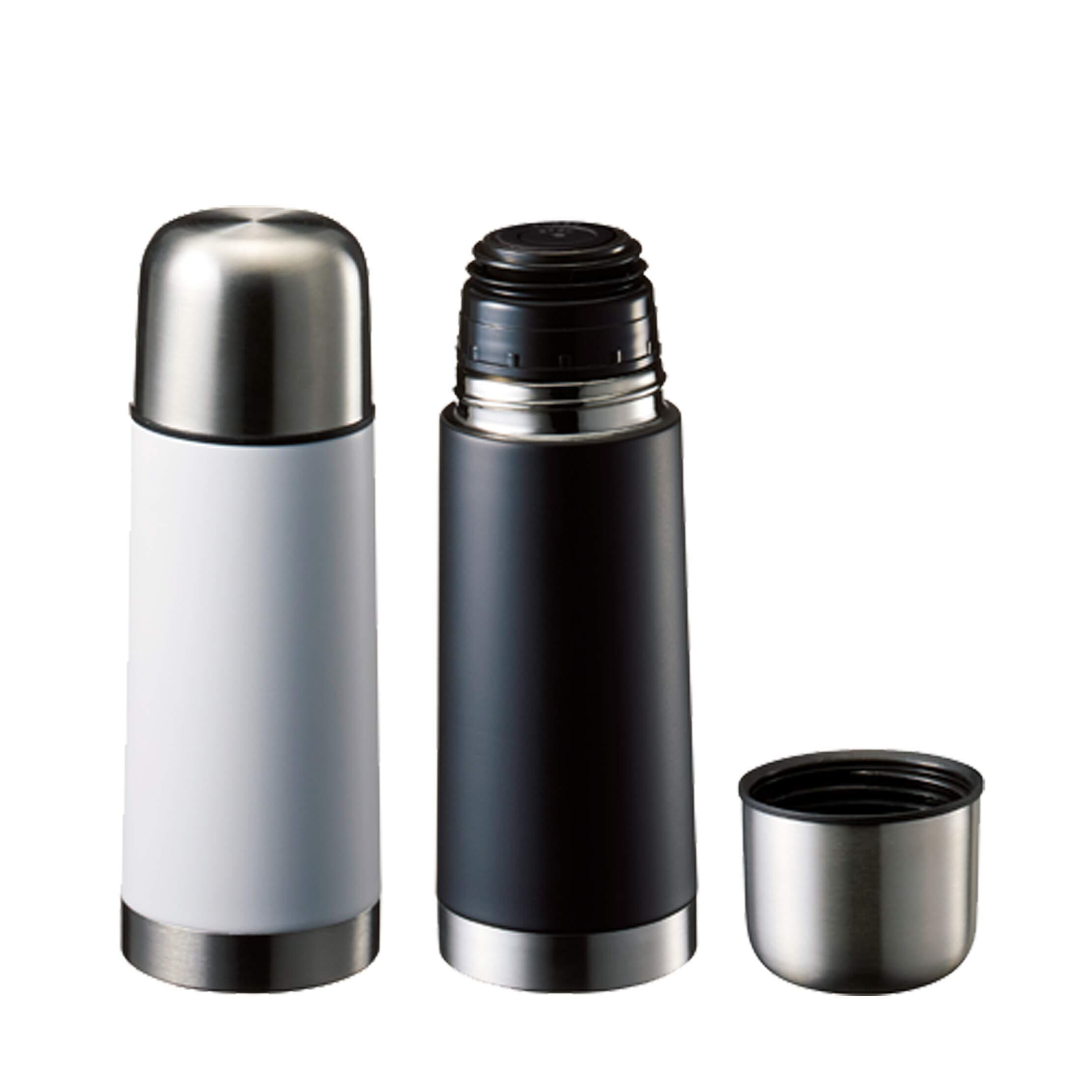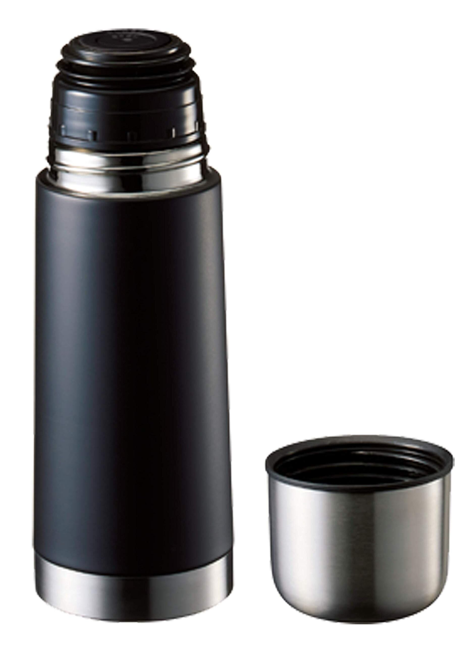 マット塗装がシックなステンレスボトル、マグボトル。フタがコップになるタイプ。コーヒーや紅茶嗜好品は直飲みではなく、やっぱりコップで香りも楽しみたい。お子さんも安心なコップタイプ。
