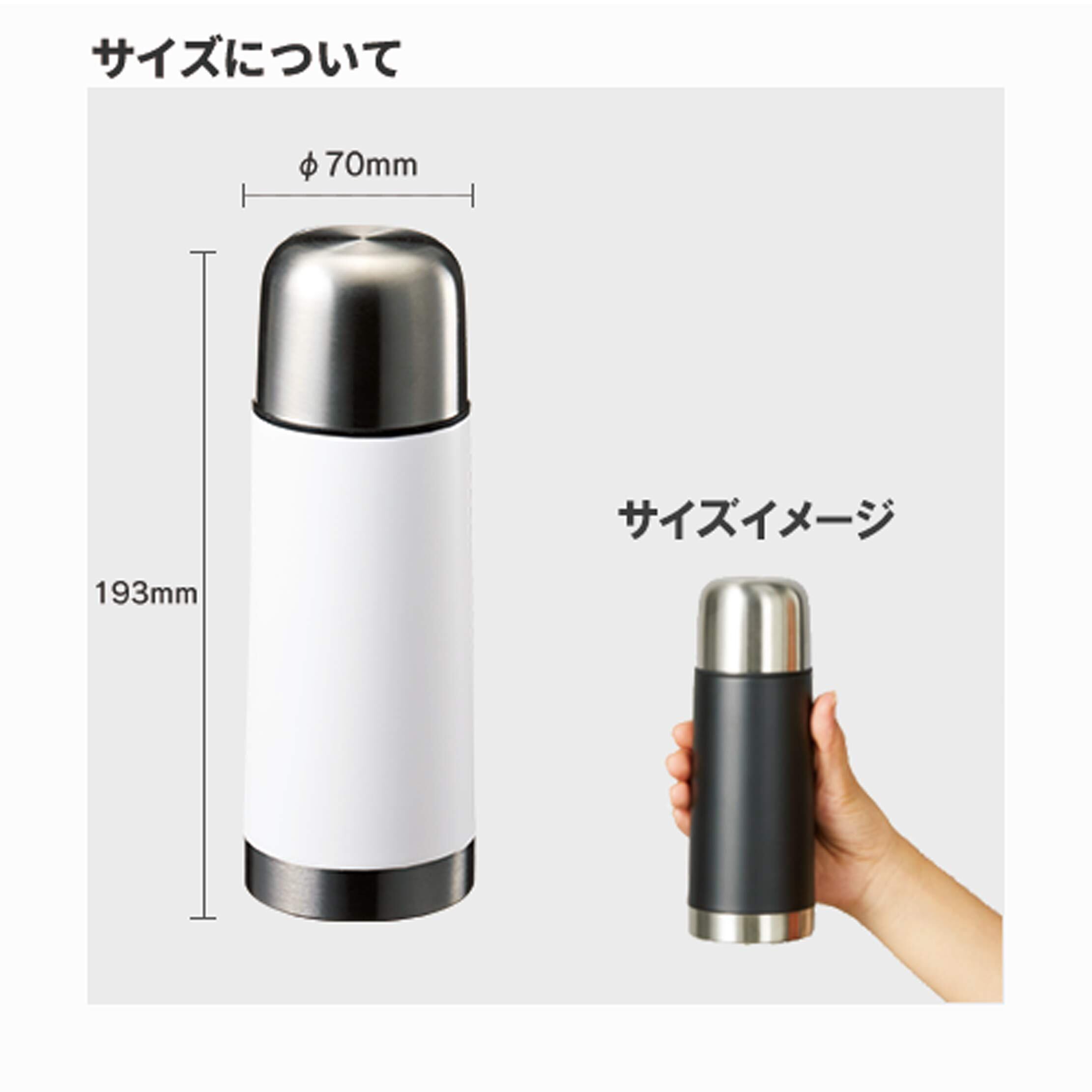 サイズ:φ70×193(mm)。 マット塗装がシックな印象 熱い飲み物も安心のコップ付ボトル