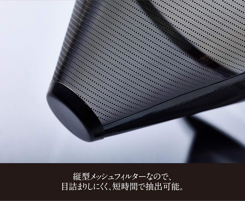 フィルターメッシュの形状が縦長なので、抽出中に目詰まりが起こりにくく、素早く抽出ができる