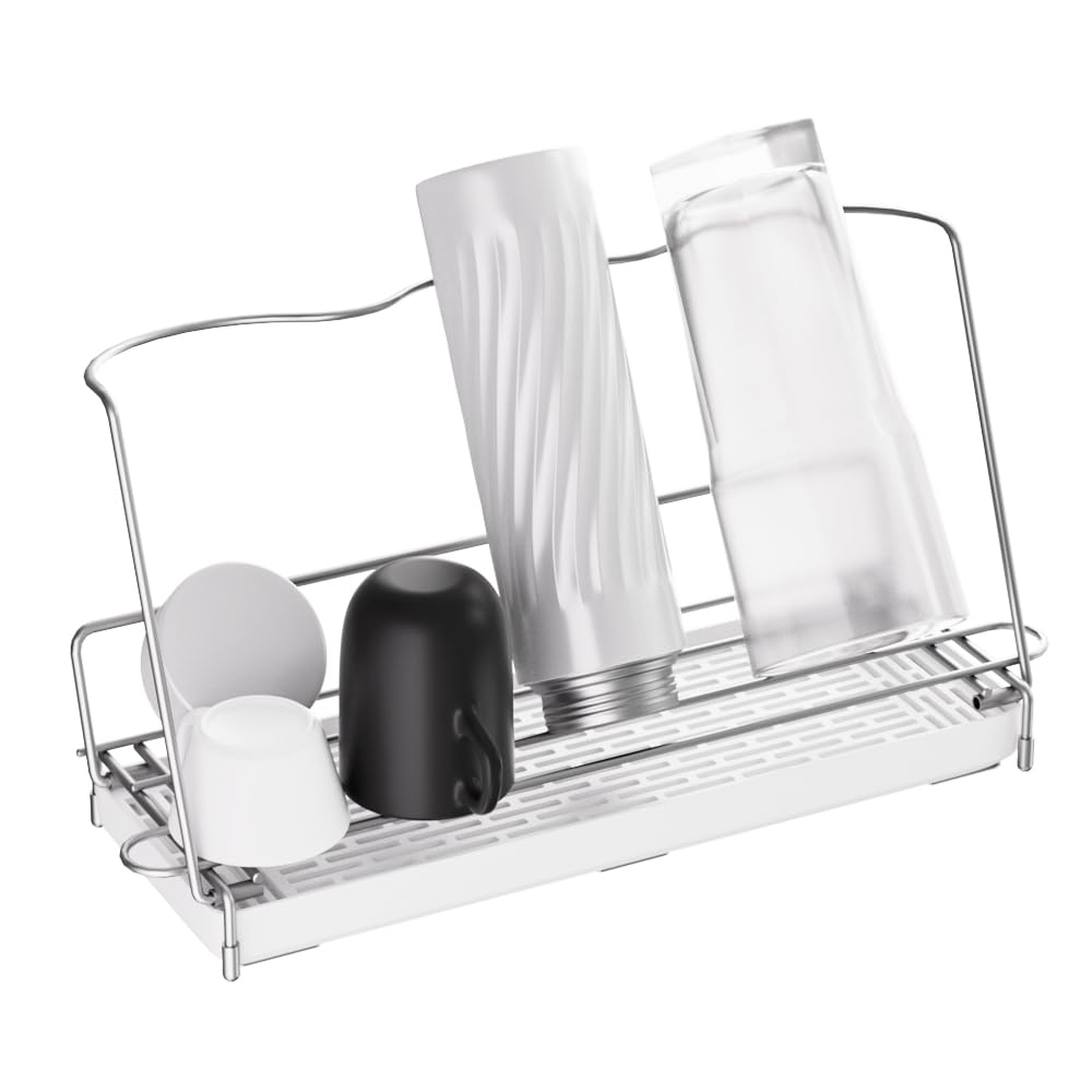 【数量限】ボトルスタンド 水筒水切り ジャグボトルスタンド 折りたたみ式 ステンレス製 シンク周り収納 コップ置き 水筒干し 水切りトレイ付き 食洗機対応 コンパクト 斜めに立てかける | GIGATERA
