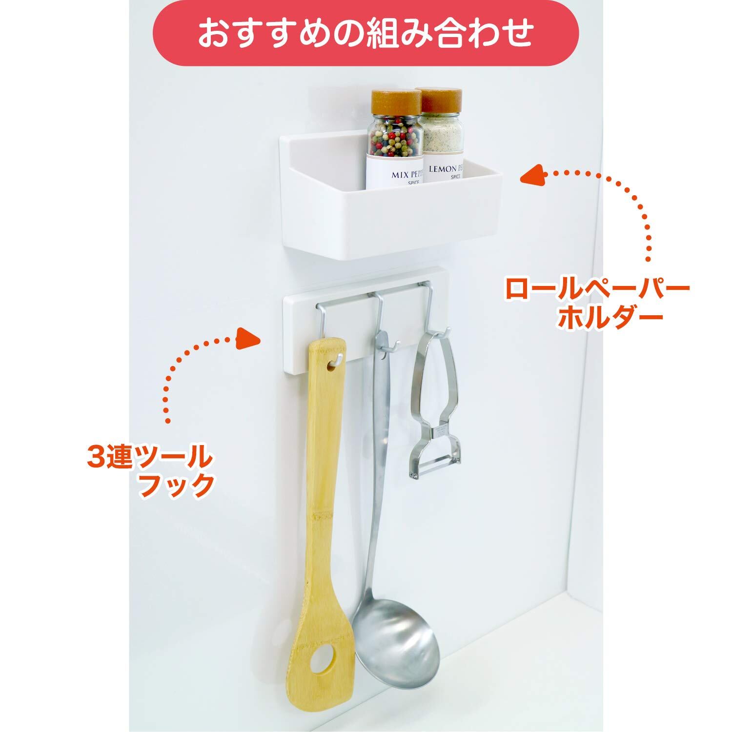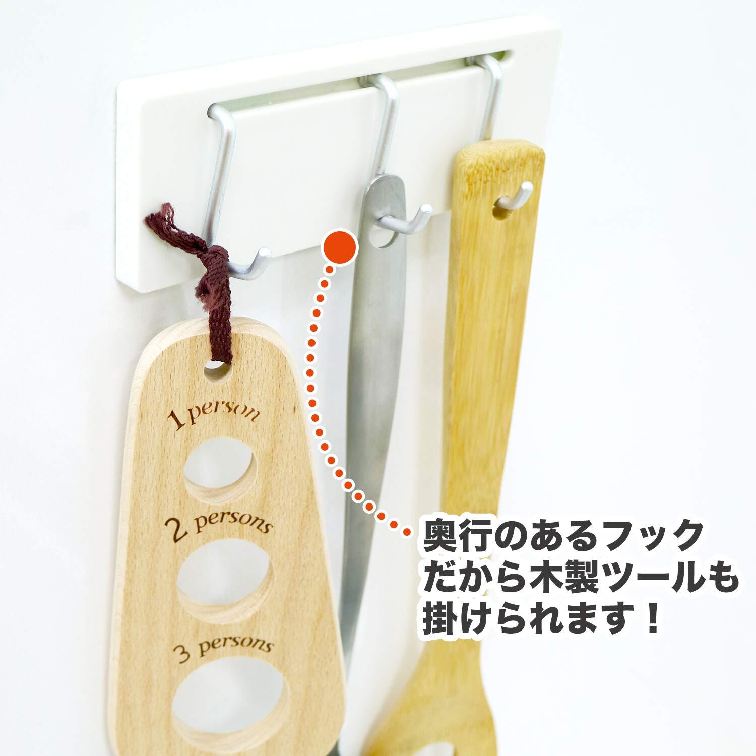 キッチンの壁にキレイに貼れるキッチンツールフックです。