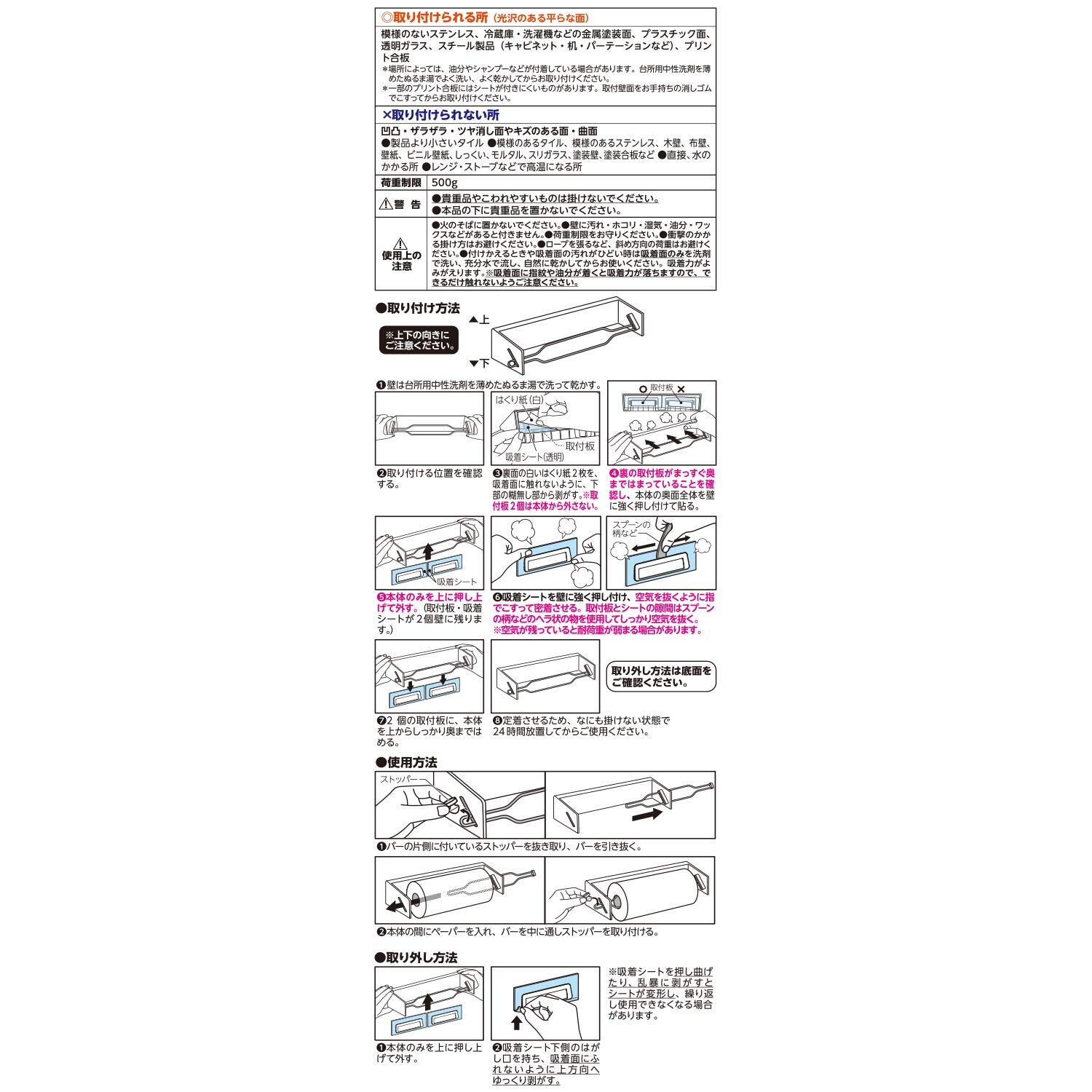 ●傷をつけず、キッチンの壁にピタッとキレイに貼れるロールペーパーホルダーです。