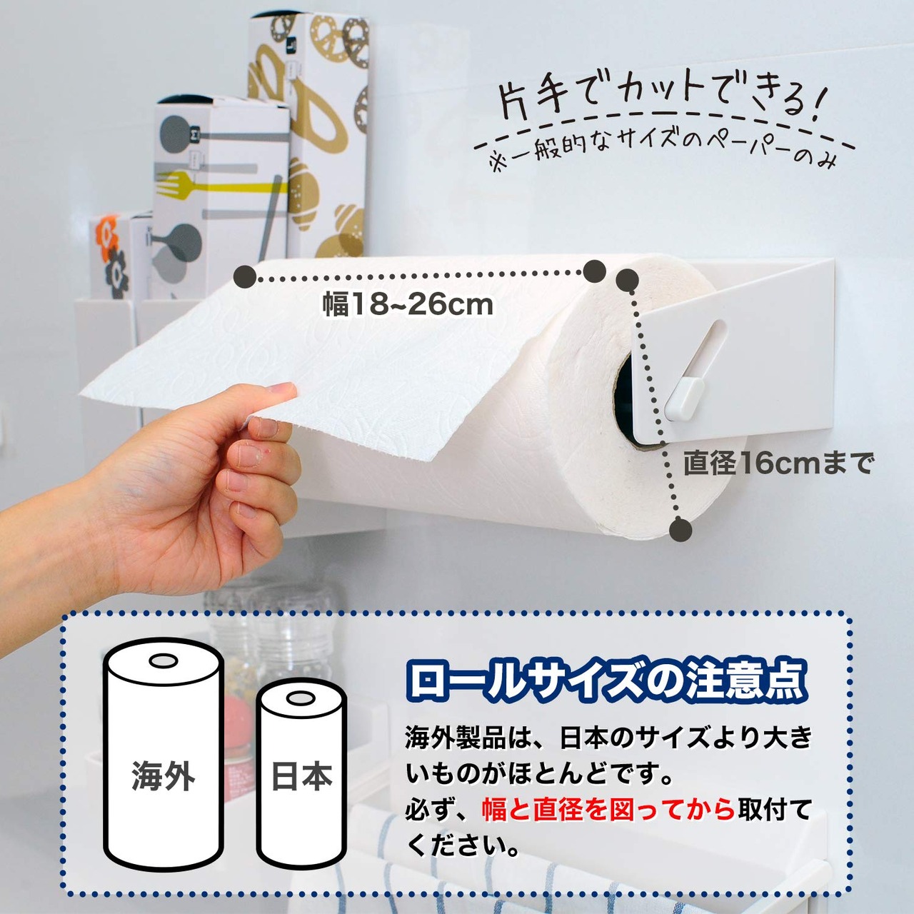 ●対応するロールペーパー:幅18〜26cm、直径16cmまで