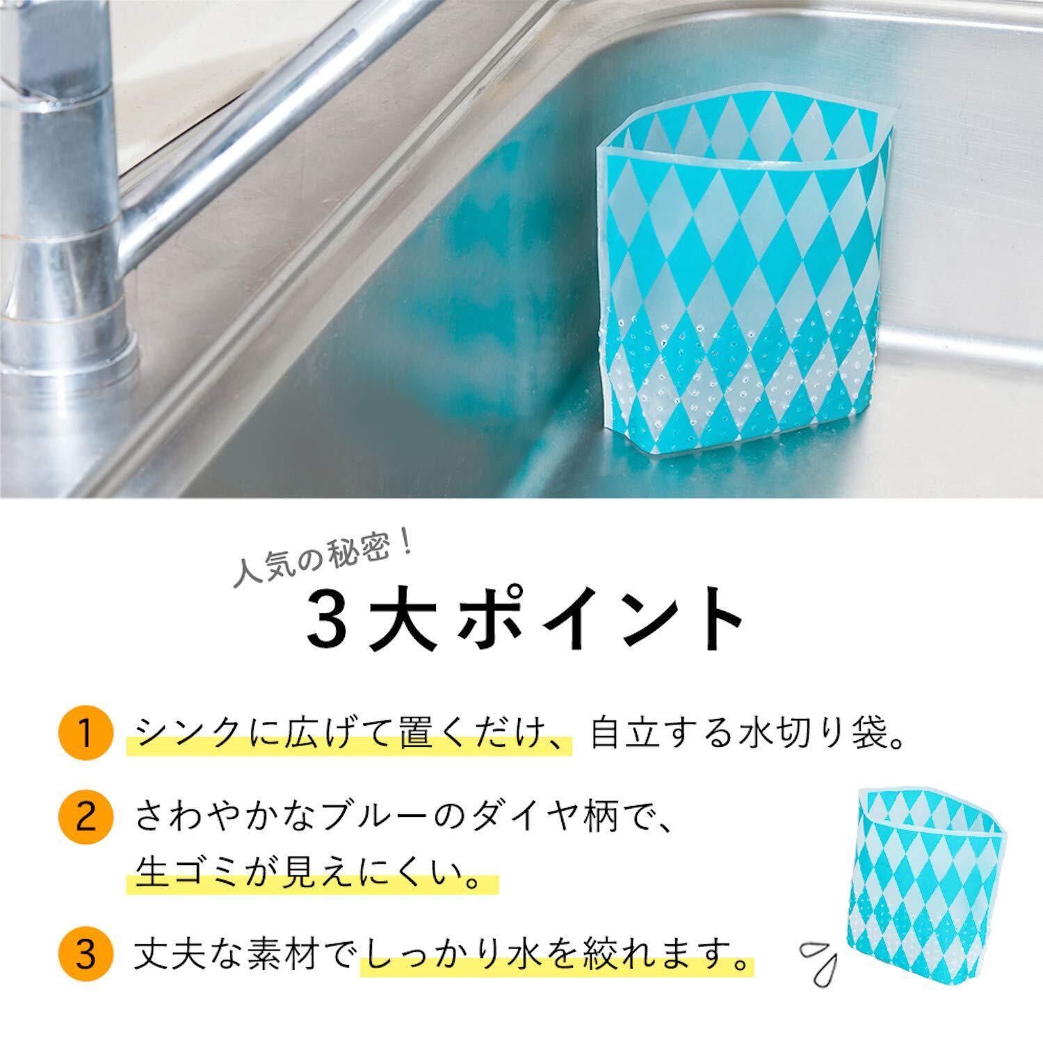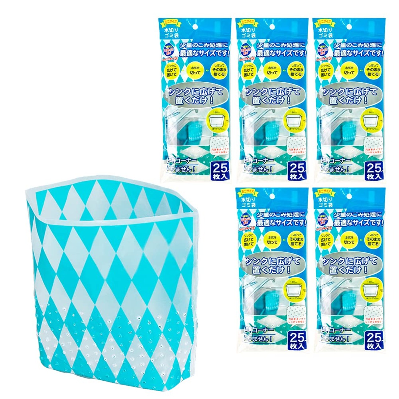 【数量限】ネクスタ 水切り ゴミ袋 ごみっこポイ スタンドタイプ ミニサイズ ダイヤ柄 幅18×高さ14×底マチ10cm シンクに広げて置くだけ 穴あきタイプ 25枚入5個セット | GIGATERA