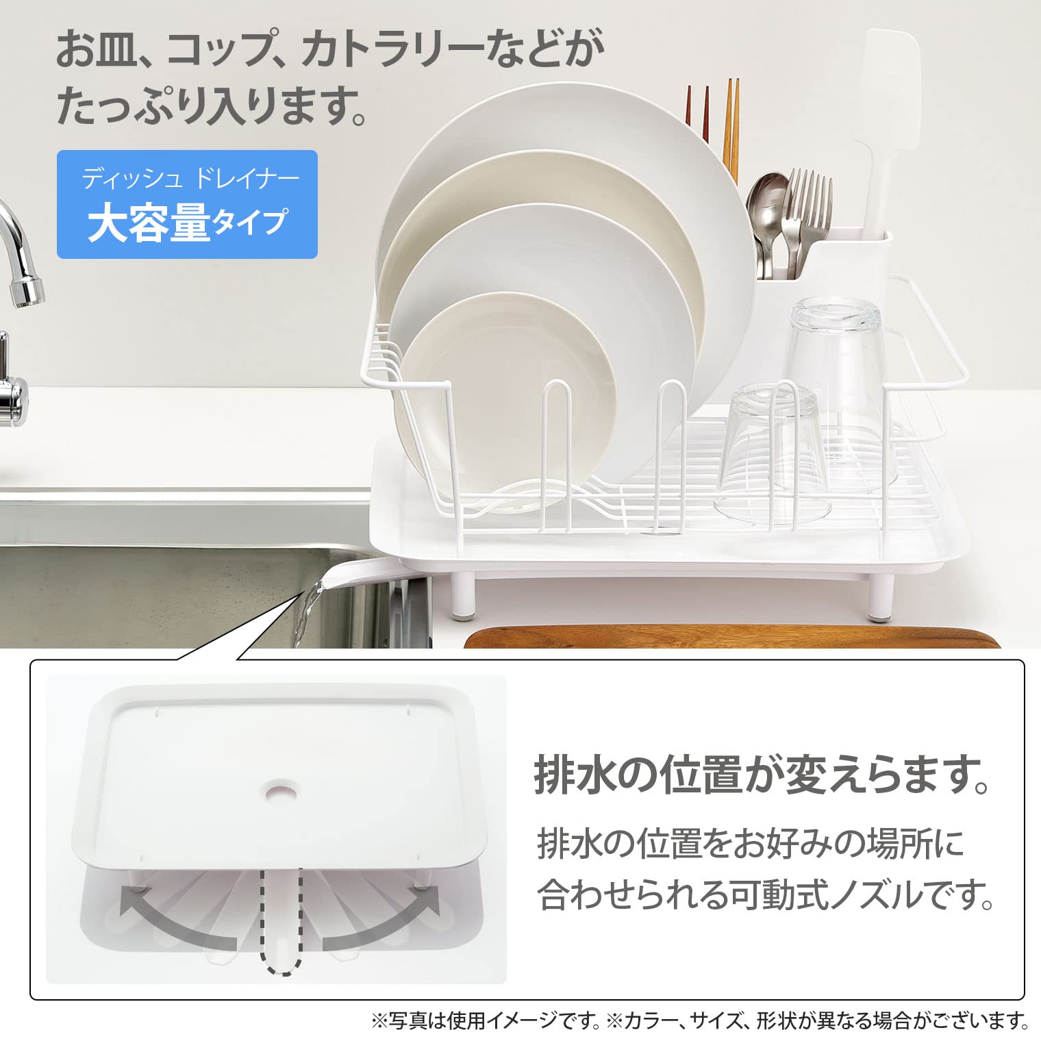 洗い物の残った水滴をそのままシンクに排水できます