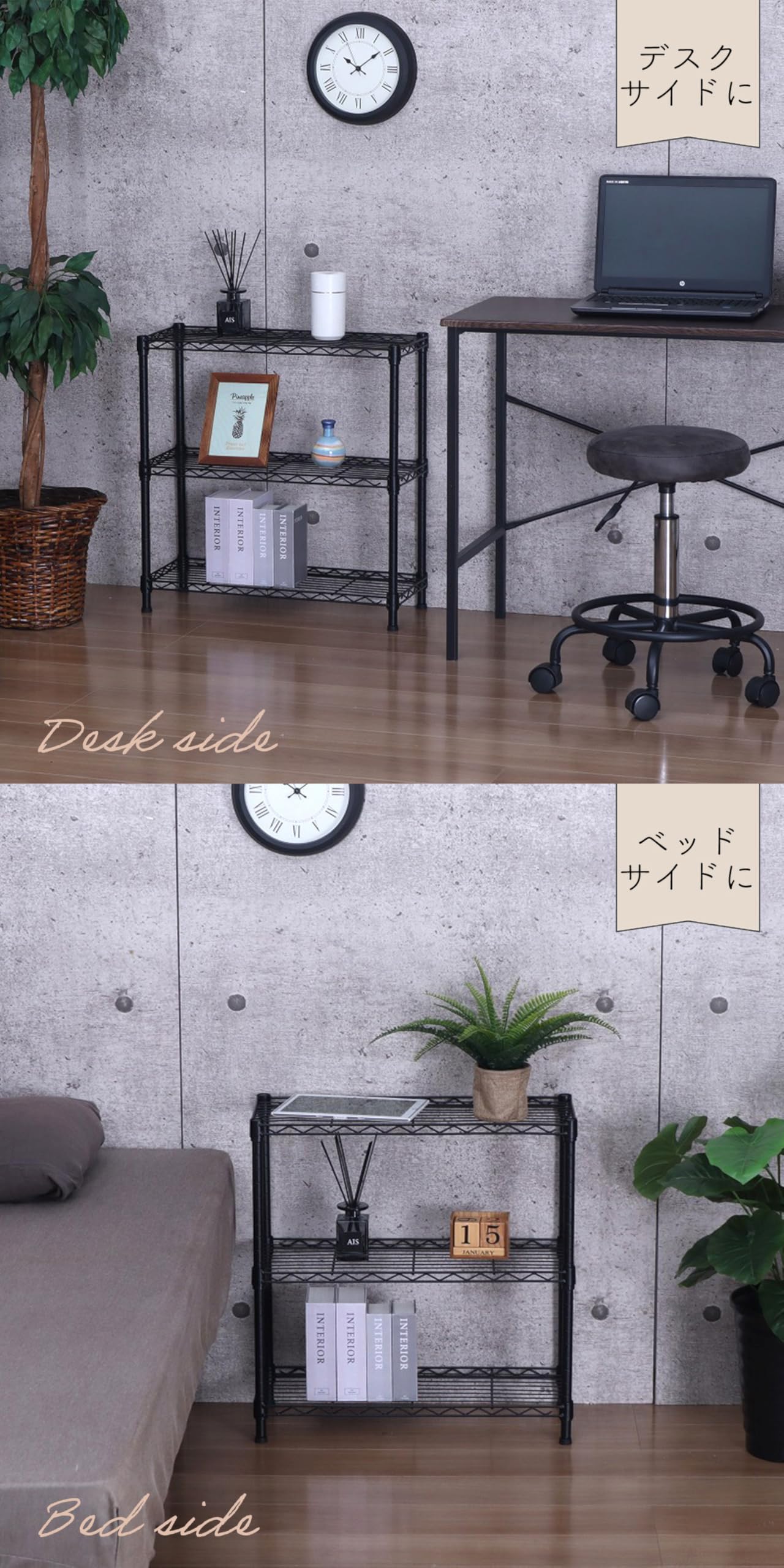 ◆19φ NEROシリーズ スチールラック 幅60cm 奥行25cm 高さ62cm 3段の特徴◆