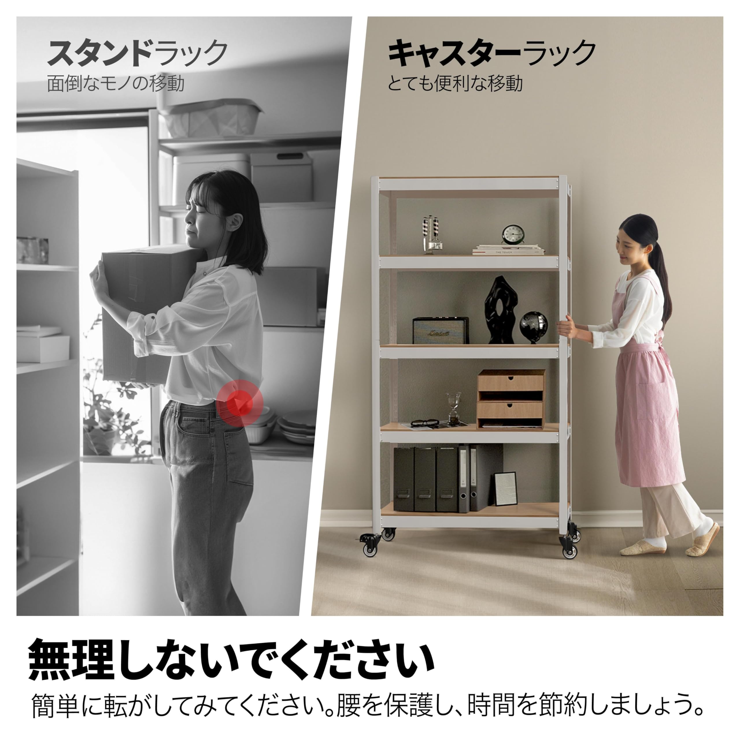 【数量限】HOMEDANT House 組立簡単 ラミネート スチールラック キッチン 5段 幅120 奥行45 高さ191 ホワイト キャスター付き ホームダント 車輪 調整可能 棚 収納棚 メタルラック 倉庫 ガラージ オフィス 業務用 | GIGATERA