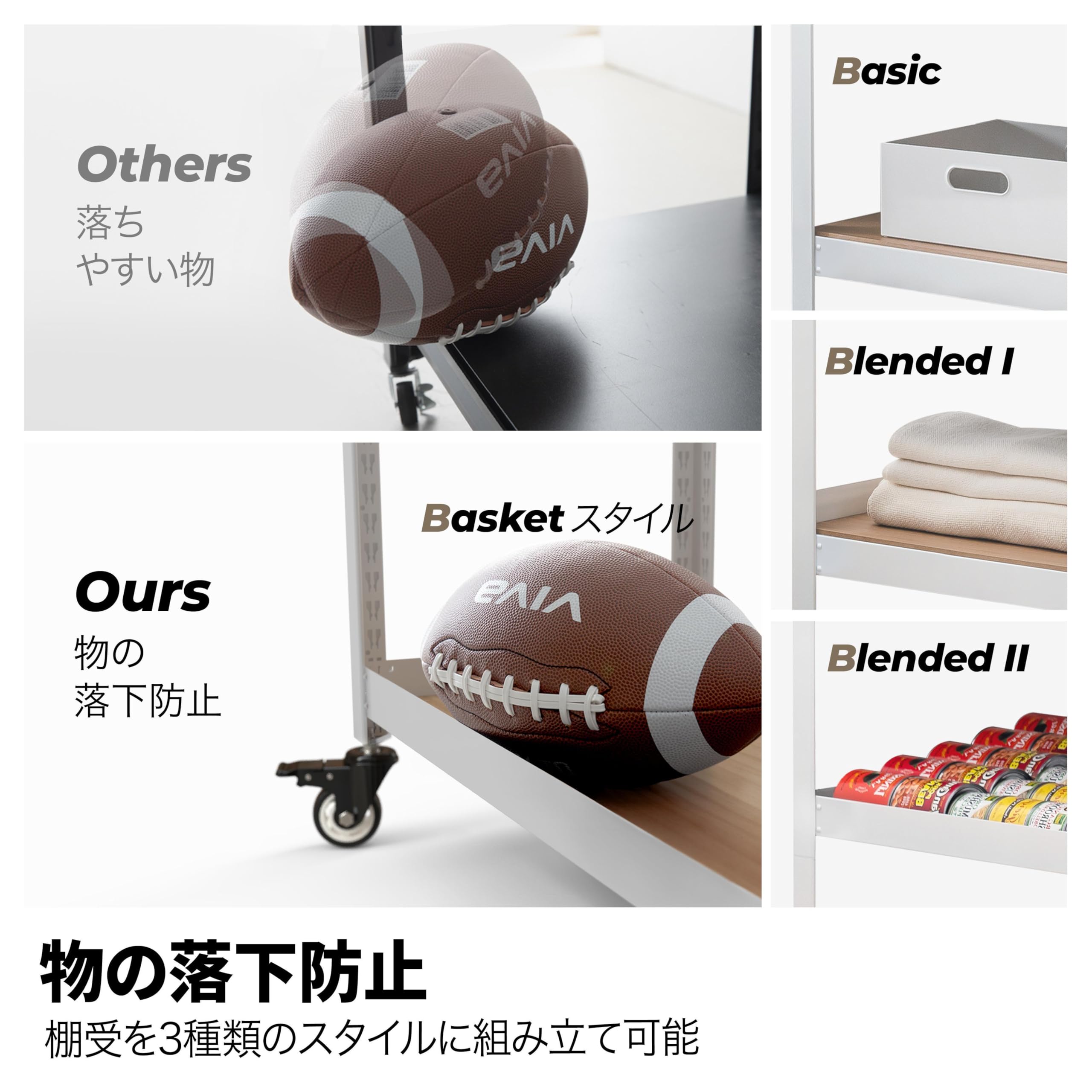 有用な構成可能性:収納スタイルに合わせて4種類のオプションに変更できます。特に、他の棚と異なり、Basketスタイルのデザインは物が安全に固定され、こぼれたり落ちたりするのを防ぐことができます。キャスター棚が必要なお客様には、最高の選択になるでしょう。