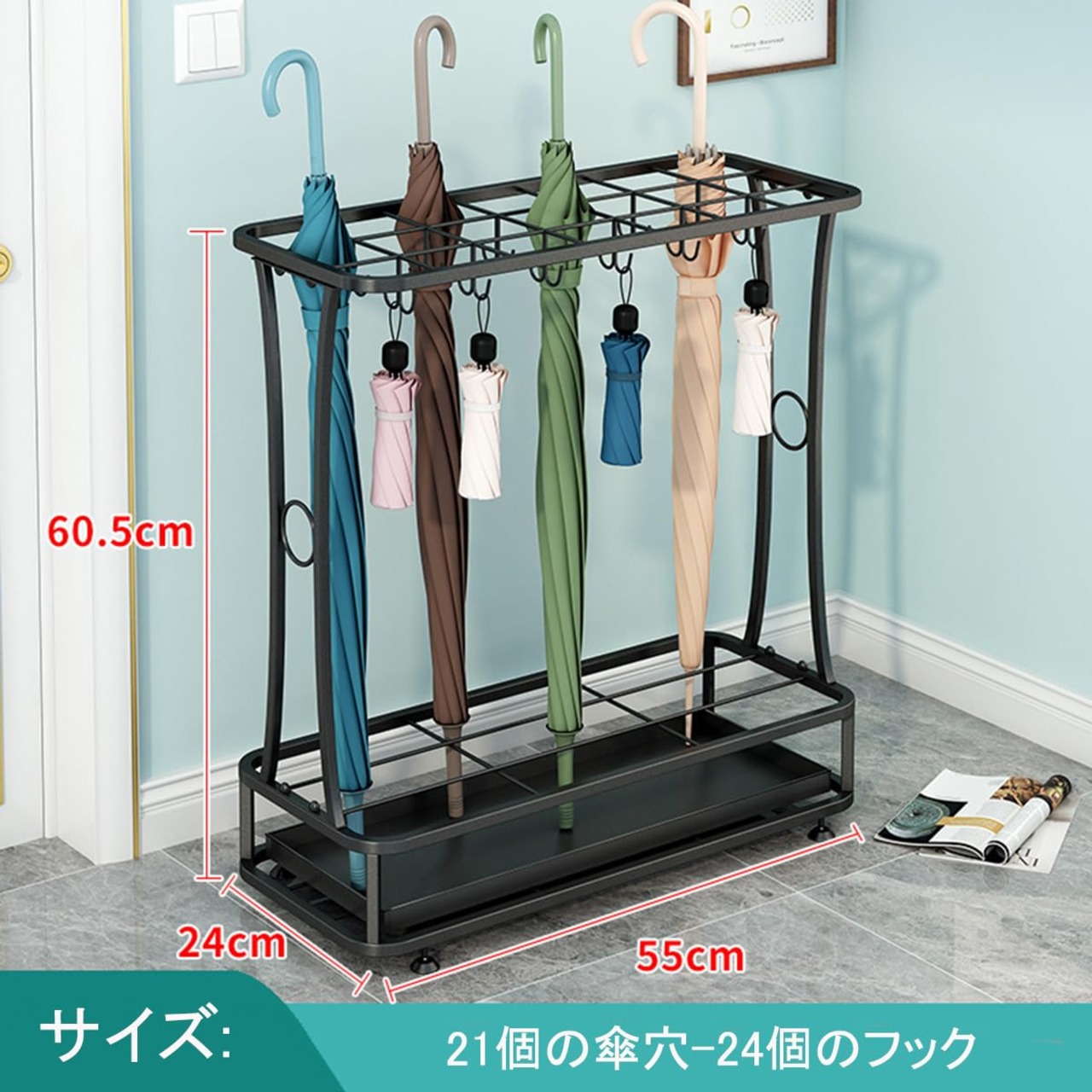 【人気】傘立て 傘収納ラック 玄関収納 大容量 水受け皿付き フック付き 家庭用 業務用 組み立てが簡単 安定 省スペース おしゃれ人気 ブラック (21本立て) [並行輸入品] | GIGATERA