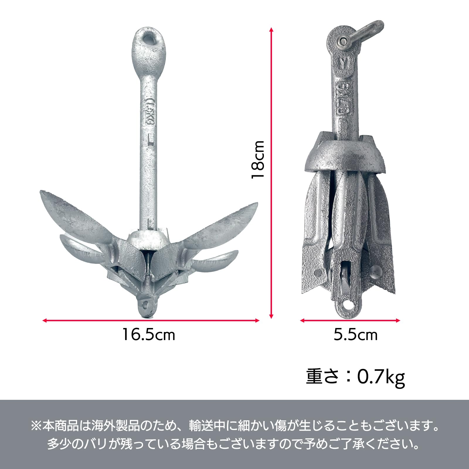 S-NET フォールディング アンカー ボート カヤック 折りたたみ 釣り フィッシング ヨット 浅瀬 カヌー 亜鉛 メッキ SN-382-FA 0.7kg