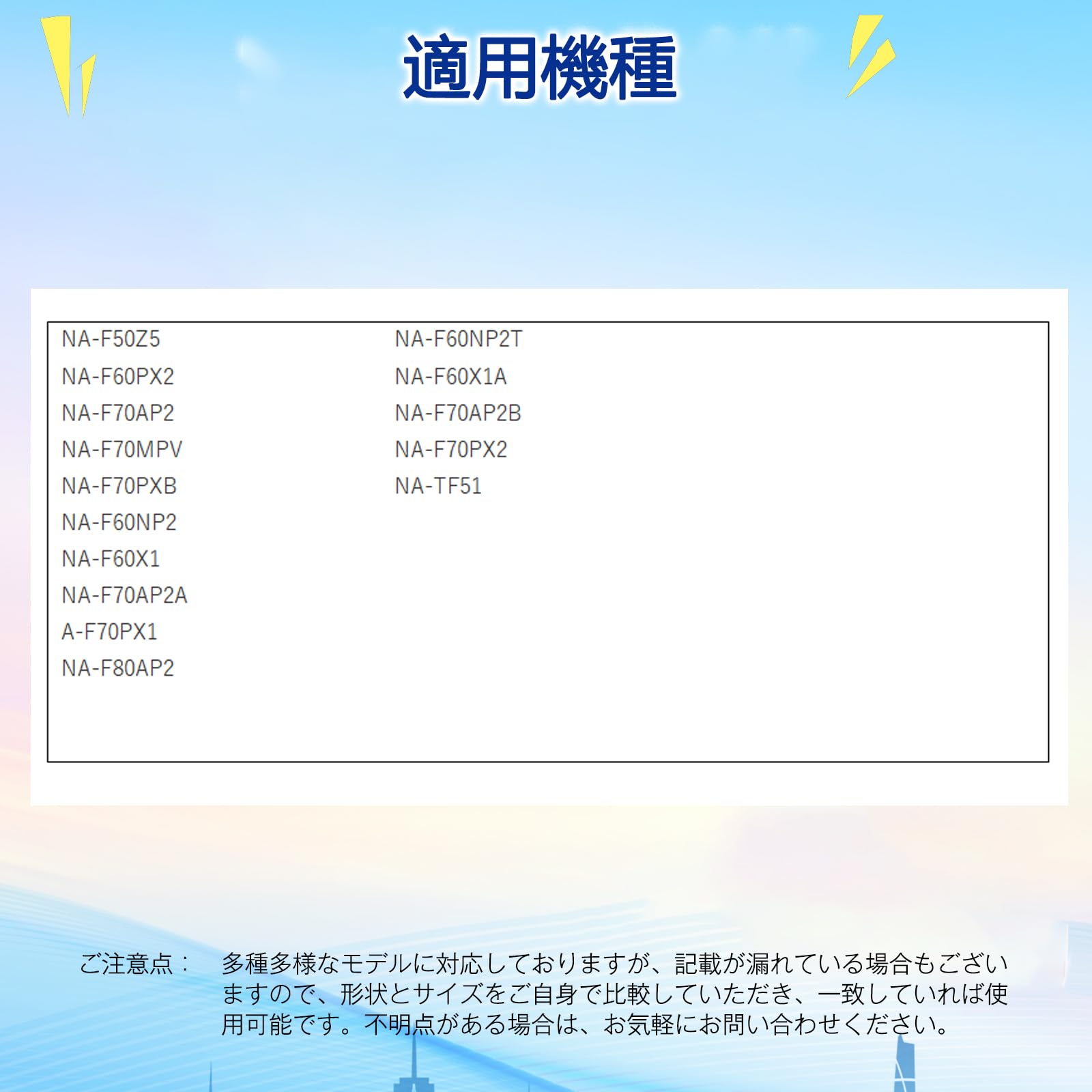 【対応機種】NA-F50Z5、NA-F60NP2、NA-F60NP2T、NA-F60PX2、NA-F60X1、NA-F60X1A、NA-F70AP2、NA-F70AP2A、NA-F70AP2B、NA-F70MPV、A-F70PX1、NA-F70PX2、NA-F70PXB、NA-F80AP2、NA-TF51