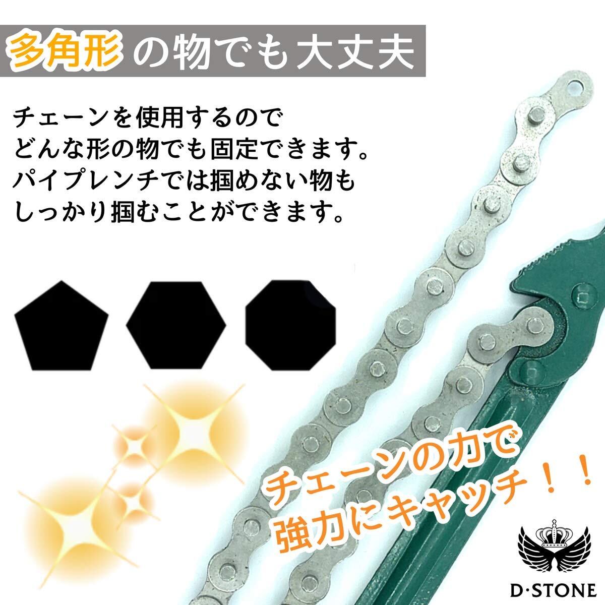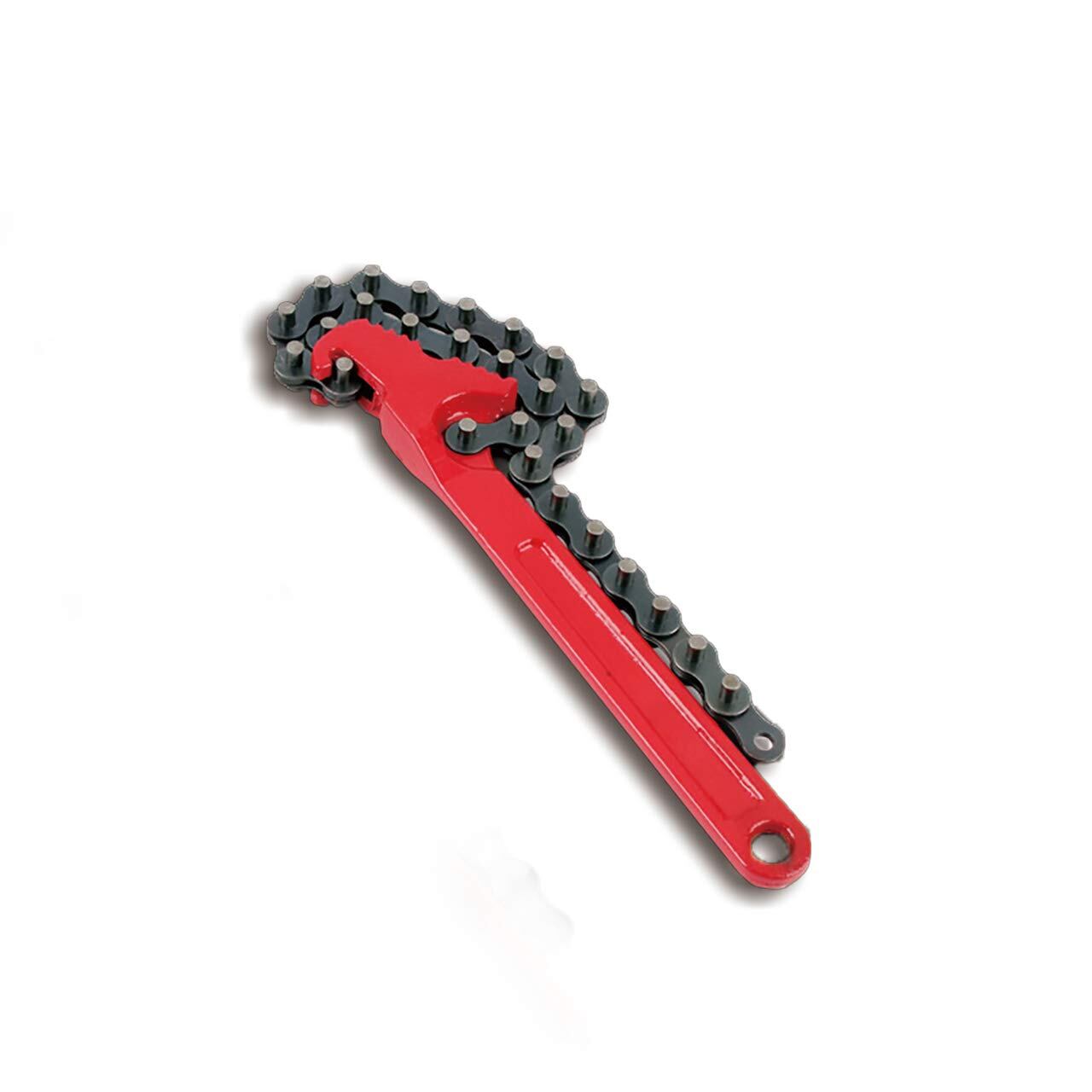 チェーンの力を利用するチェーン レンチは、様々なサイズに対応で き、オイルフィルターの交換だけ でなく三角、四角の多角形など幅 広い形に使用できます。バイク、 自動車の修理用の工具の必需品で す!