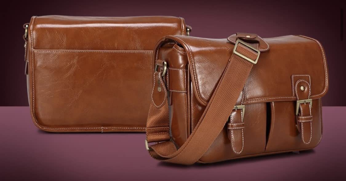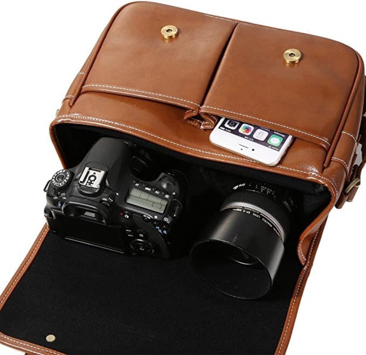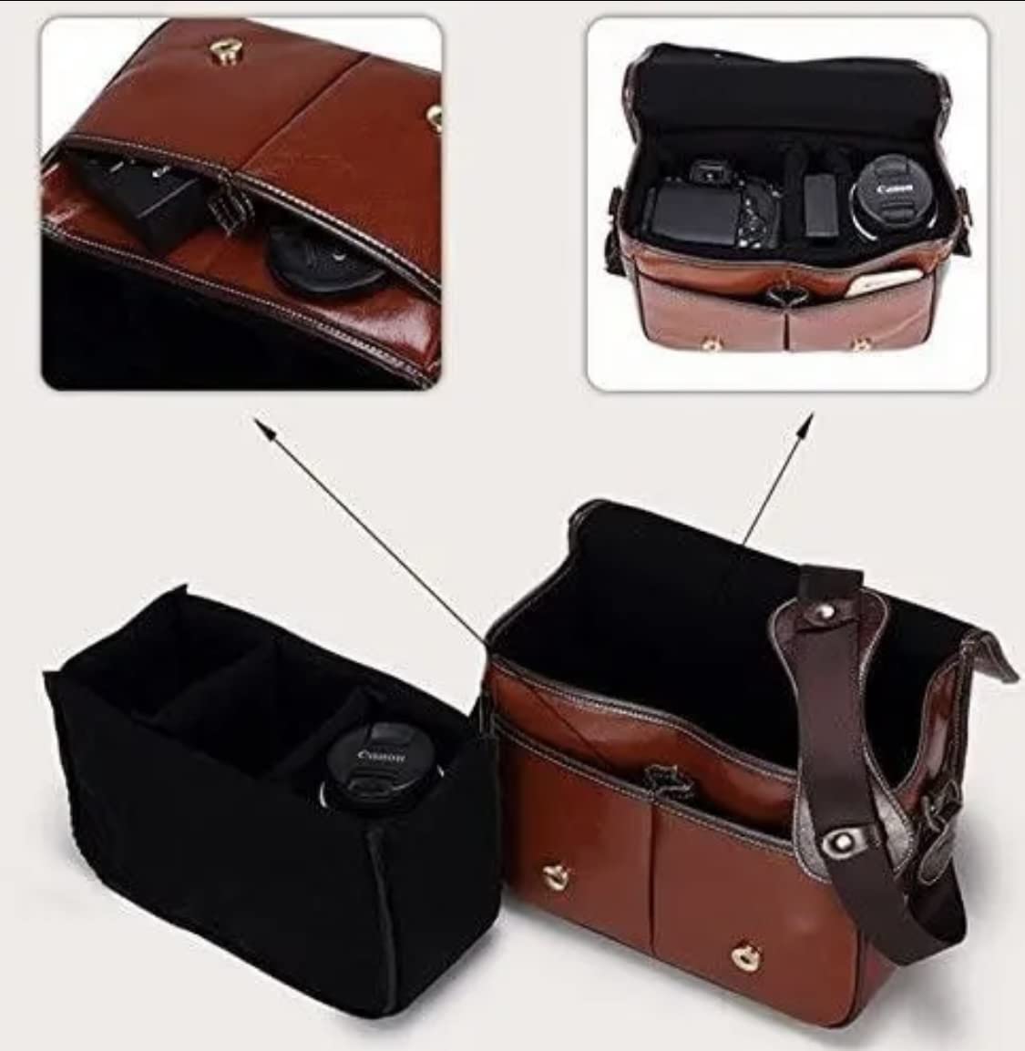 英国風 一眼レフ カメラバッグ / ショルダーバッグ (表面防水加工) レトロ 本革調 仕立て