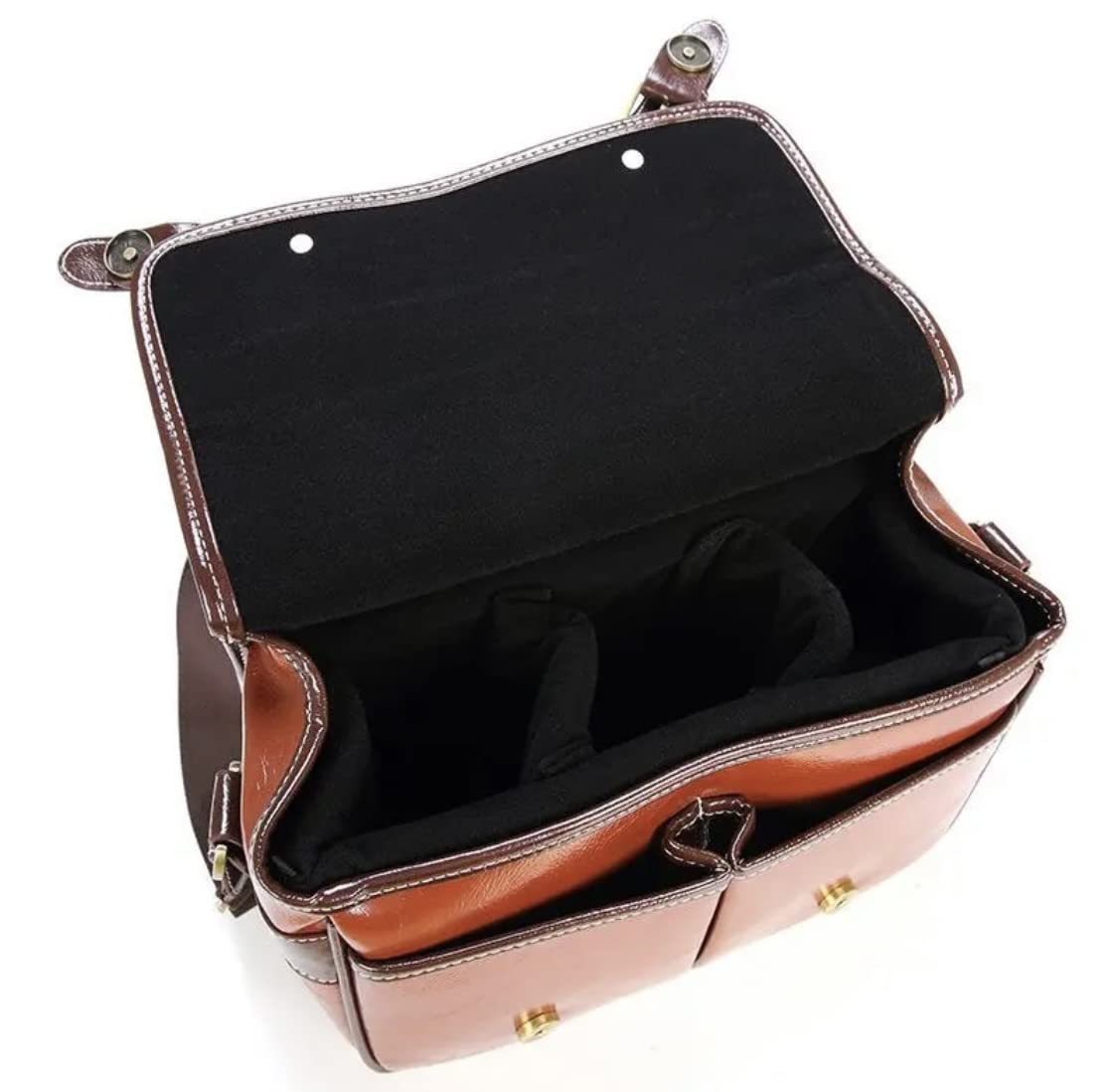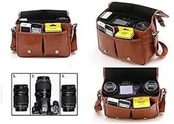 英国風 一眼レフ カメラバッグ/ショルダーバッグ ケース (防水加工) レトロ 本革調 仕立て (ライトブラウン)