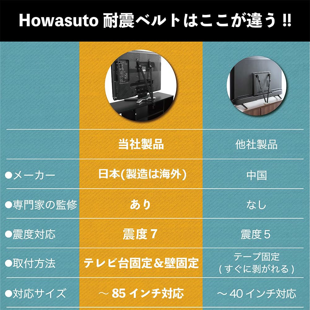 Howasuto(ホワスト) テレビ 転倒防止ベルト 【現役防災士監修】 震度7対応 85インチまで対応 地震対策 耐震 (クランプ式)