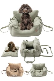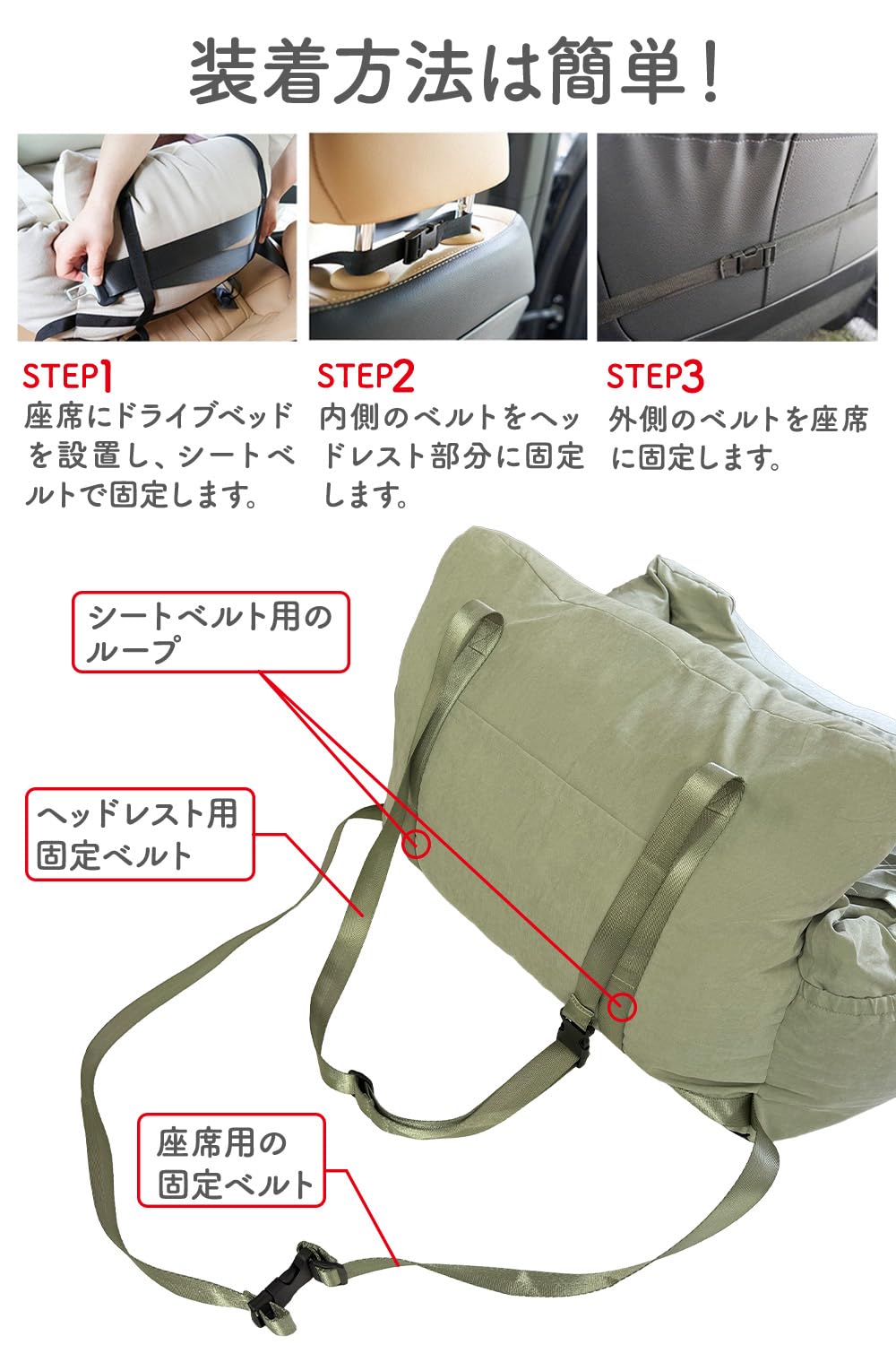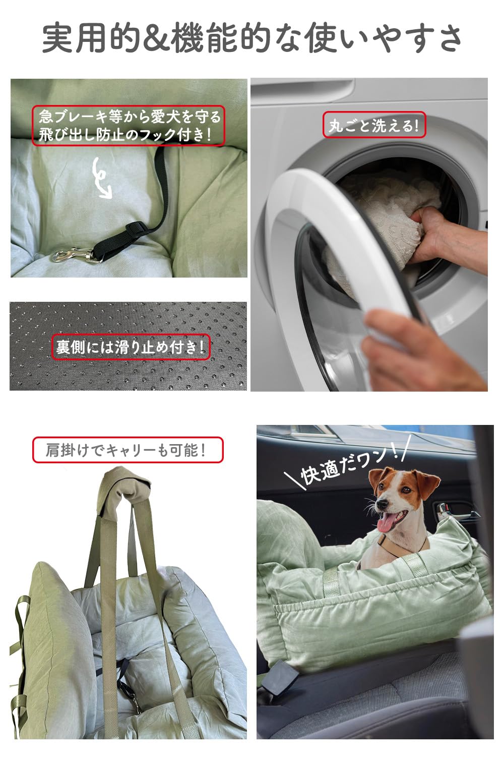 CLEAN HOUSE ドライブベッド 犬 リード 固定ベルト付き ペット ドライブボックス 洗える 車 カーキ