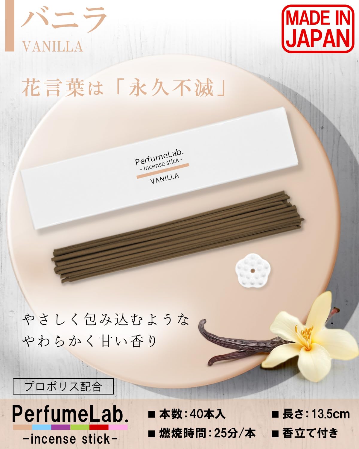 【雑誌Poco’ce掲載品】 日本製 お香 アロマ 線香 お香立て セット (40本, バニラ)