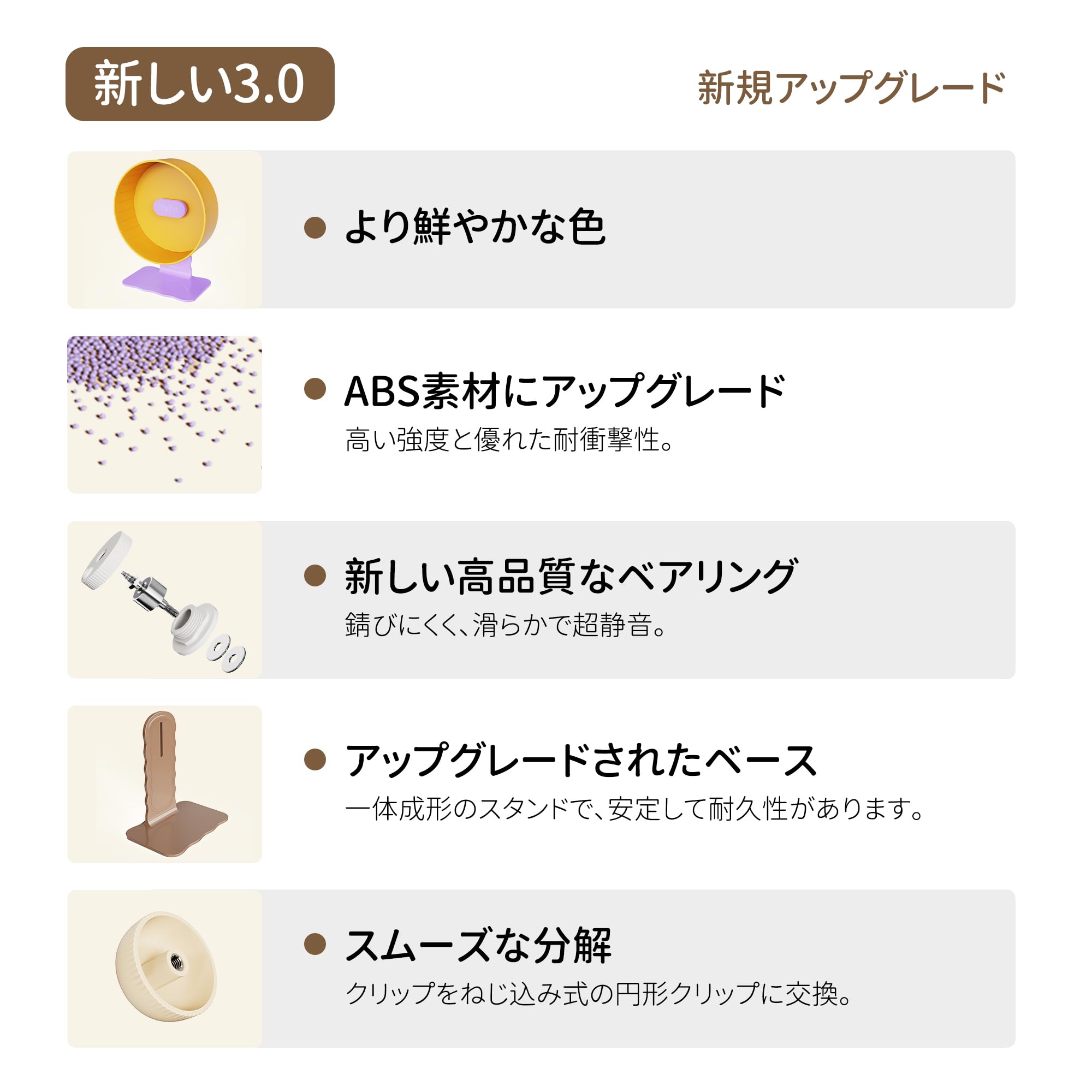 安定して静か:ダブルベアリング静音設計、ベースは堅固で安定しており、ハムスターが夜に自由に走り回っても飼い主の休息を妨げません。