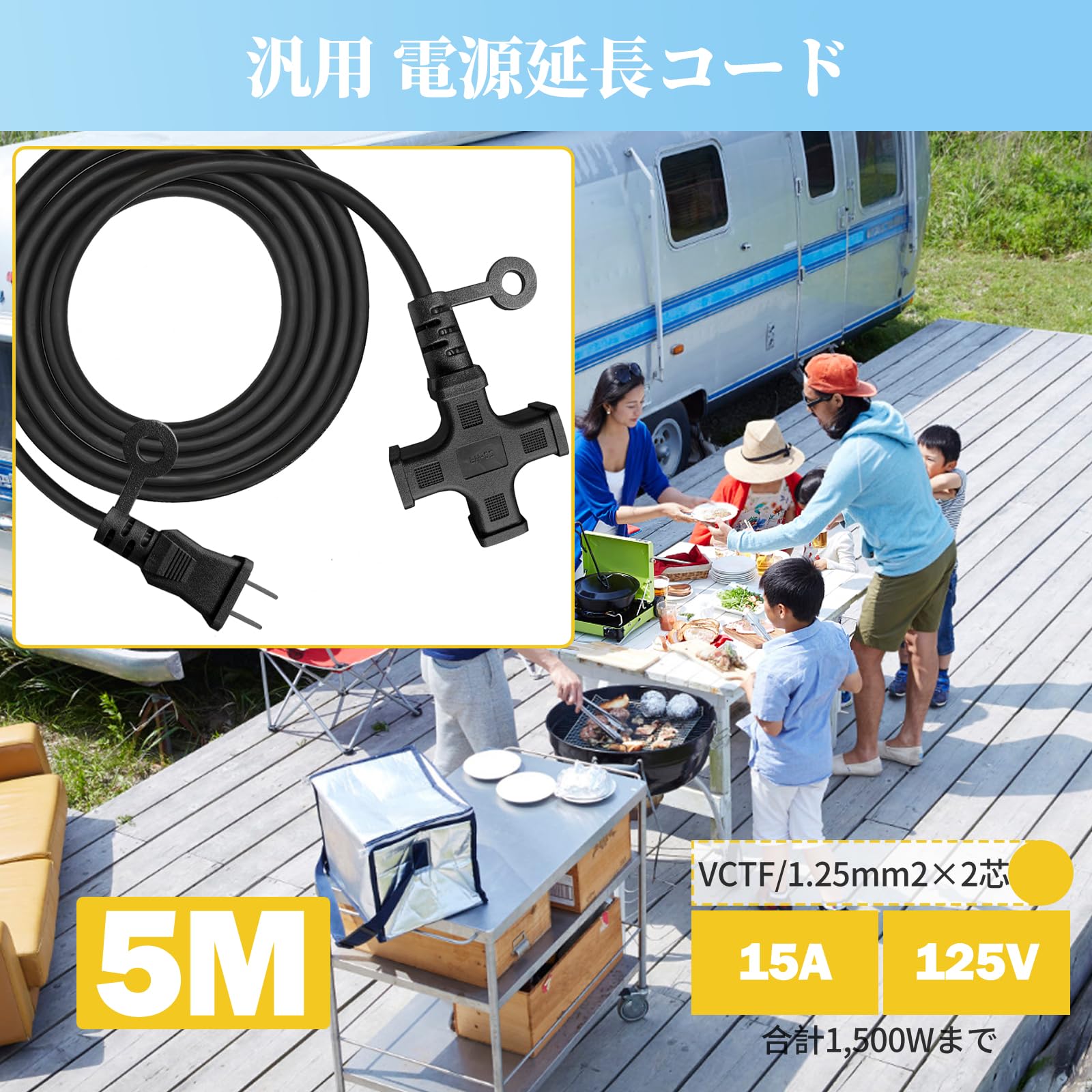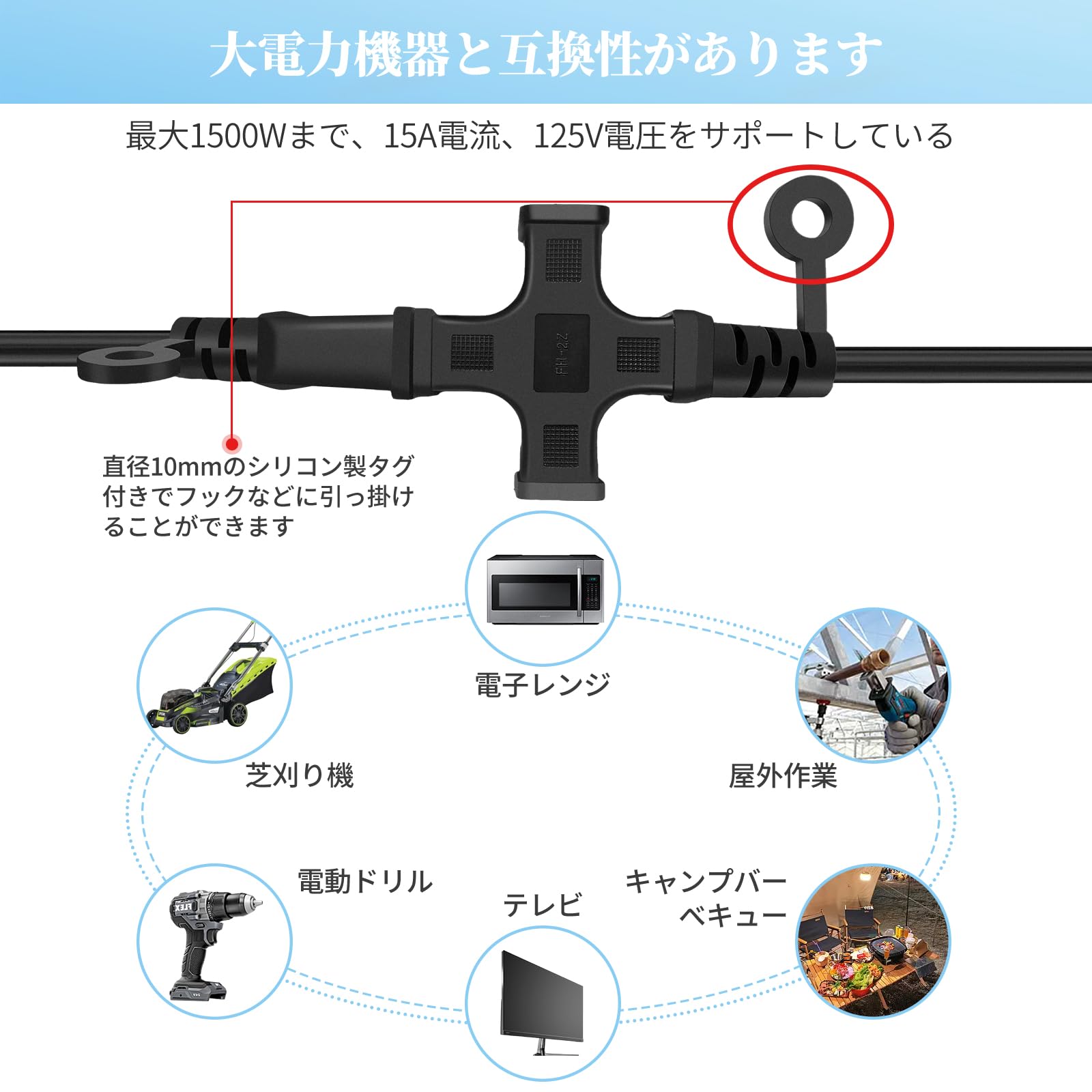 ?【汎用性多用途・3口延長コード】家庭、オフィスや店舗、工場などでも活躍することができる汎用性の高い延長コードです。延長コード屋外が延長出来る2P、3個口の延長コードです。1500Wの出力で、さまざまなデバイスで使用できます。工事現場用、車庫、キャンプ野用、ホテル、オフィスと様々なシーンで大活躍!ガーデンライト用等々の配電に。