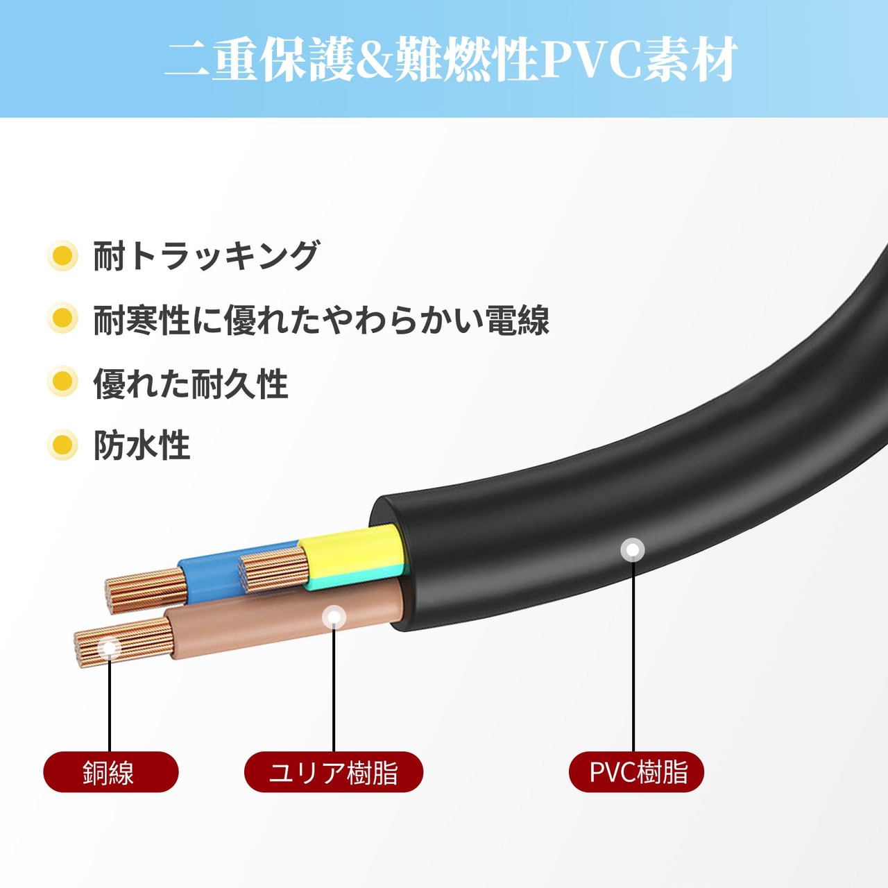 ?【熱に強い材質】延長コード 5m 3分岐は、PVC樹脂、ユリア樹脂高品質の材料に使用されるため、耐熱性やコールド抵抗などのおすすめポイントがあります。柔軟性と耐久性を備えている。 同時に、火傷が容易ではなく、電気火災を防ぐことができるという特徴もあります。