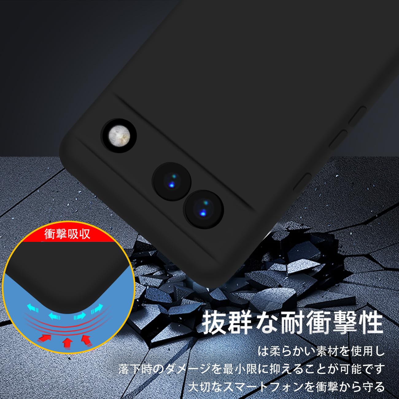Google Pixel6a 用 ケース シリコン 耐衝撃 カバー グーグル ピクセル 6a スマホケース ストラップホール付き シリコーン マット質感 持ちやすい 衝撃吸収 すり傷防止 柔軟 軽量 薄型 携帯ケース (ブラック)