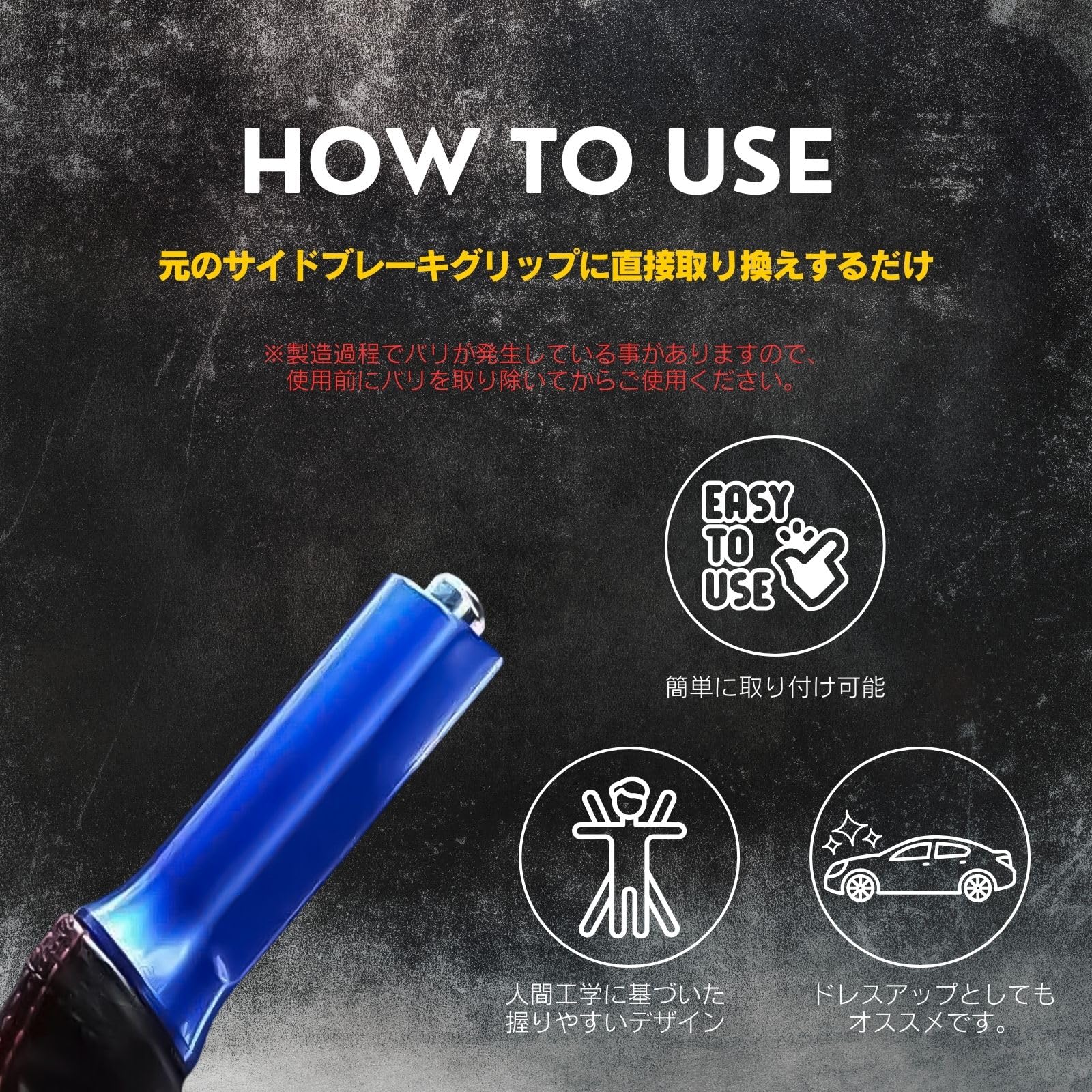 比較的簡単に取り付け可能で、元のサイドブレーキグリップに直接取り替え可能。説明書は付属しておりませんので、基本的な車両メンテナンスの知識がある方におすすめします。