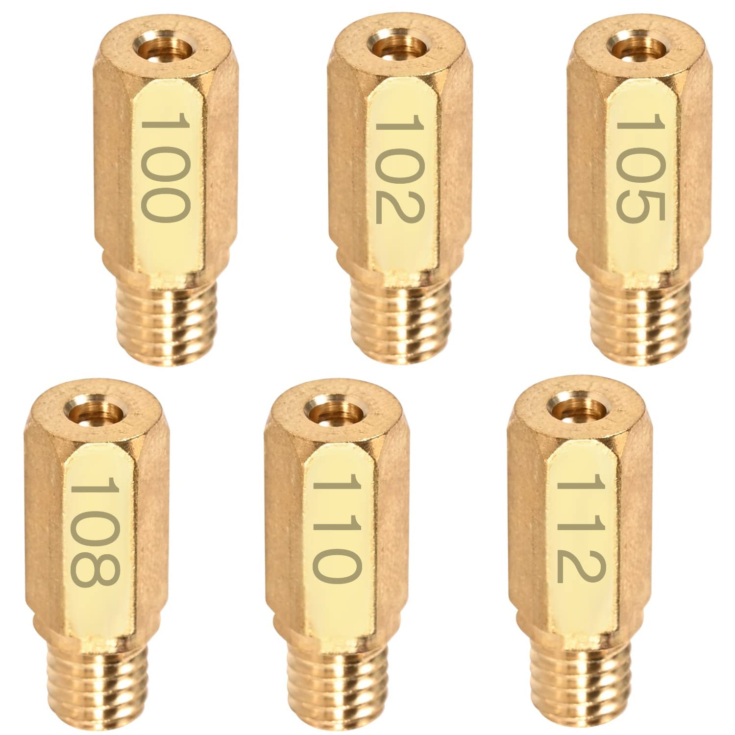 【メインジェットセット内容】メインジェット PWK 六角大 #100#102#105#108#110#112 各1コ入り、合計6個セットです。ご購入頂く前に、ご自分のキャブレターの適合サイズを確認してご購入ください。