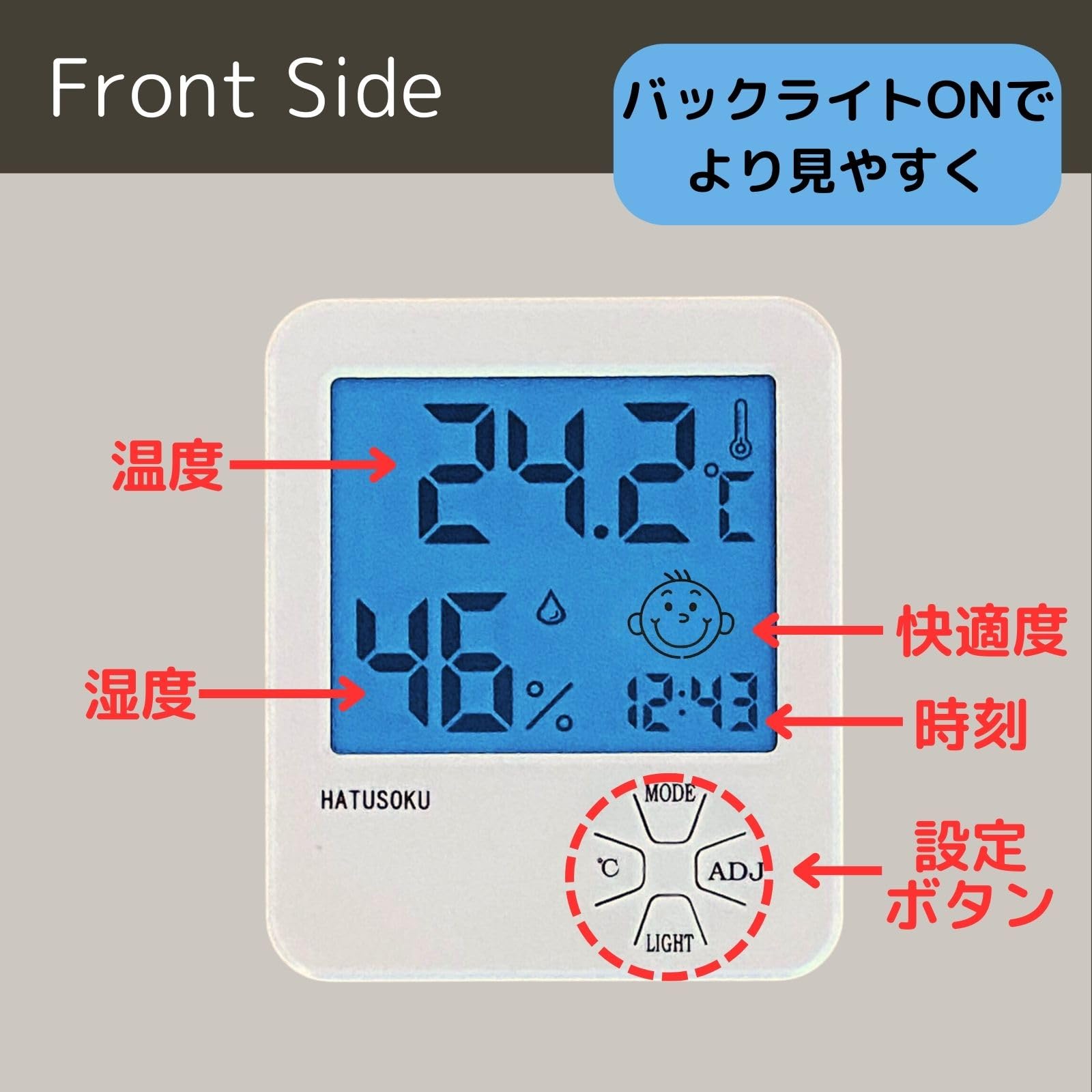 HATUSOKU デジタル温湿度計 温度計 湿度計 快適度顔表示 (バックライト付き) ホワイト