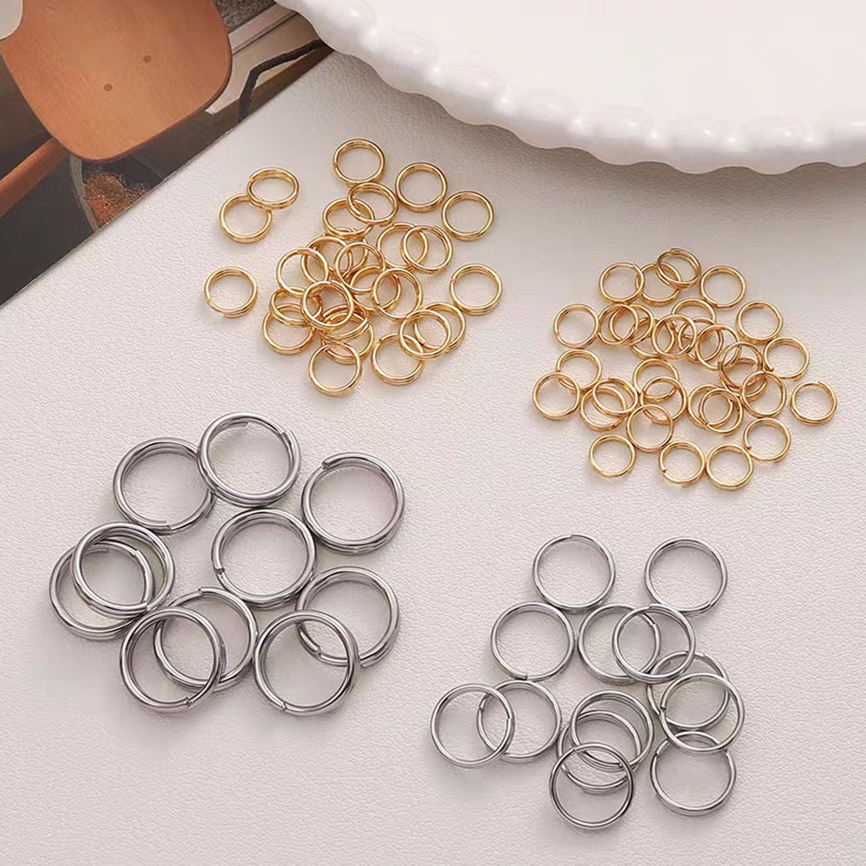 二重丸カン 4mm/5mm/6mm/8mm/10mm/12mm 6種 約680個 ジャンプリング 金具 基礎パーツ キーホルダー パーツ スプリットキーリング クラフト用品 鉄製 DIY用 ブレスレット (シルバー)