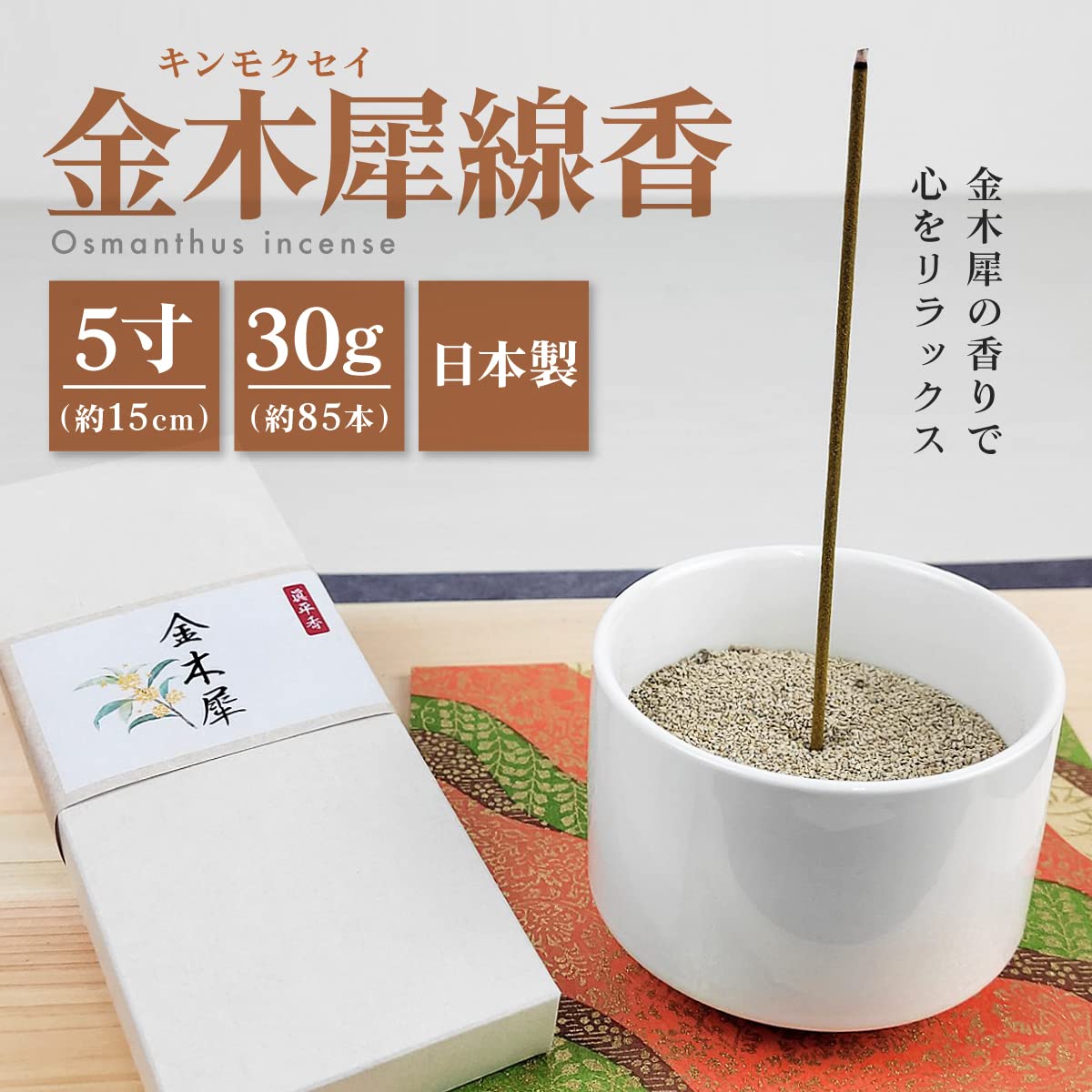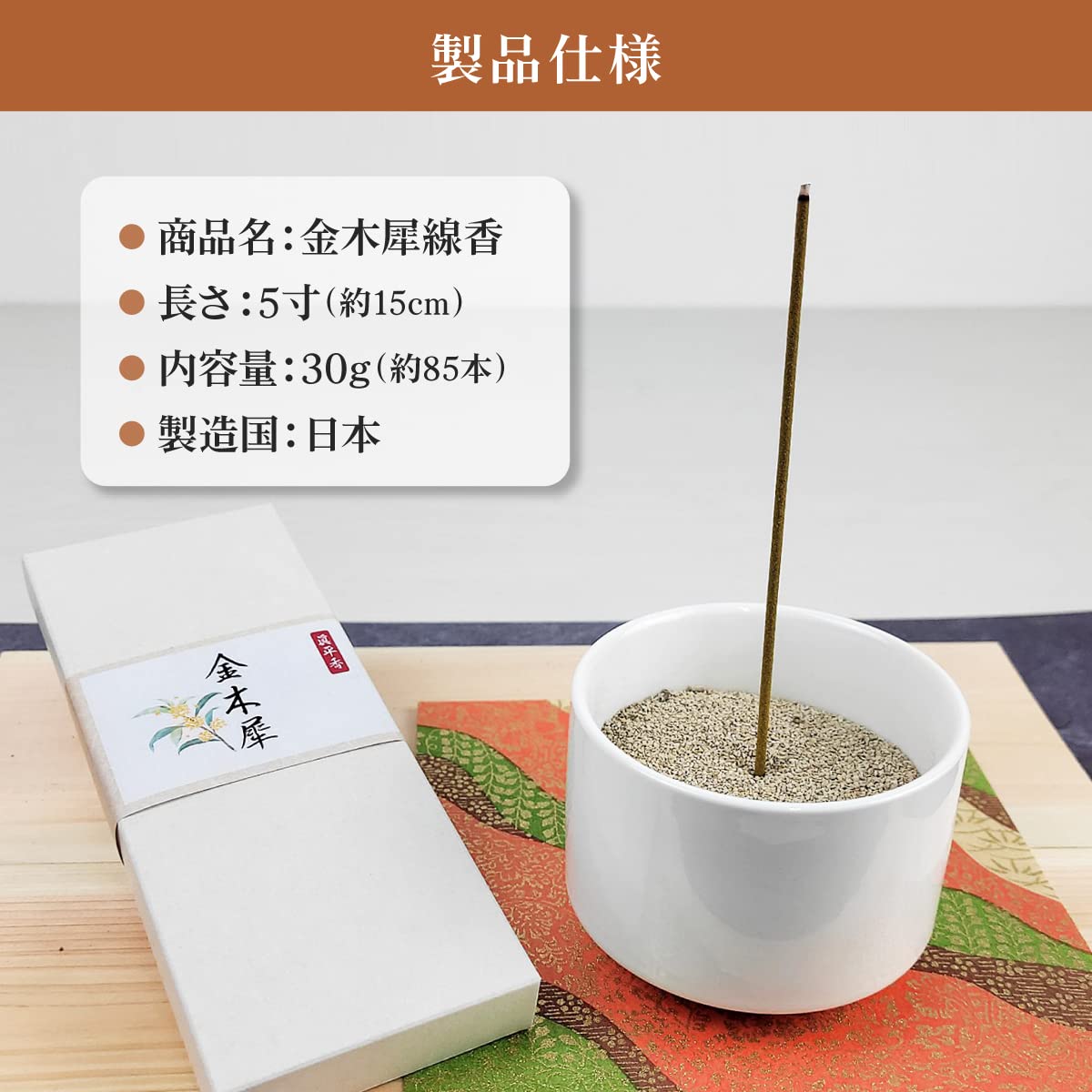 金木犀の香りの5寸線香です。 金木犀のフローラルな香りをお楽しみいただけます。 金木犀の香りは日本でなじみ深く、古来より愛されてきた香りです。