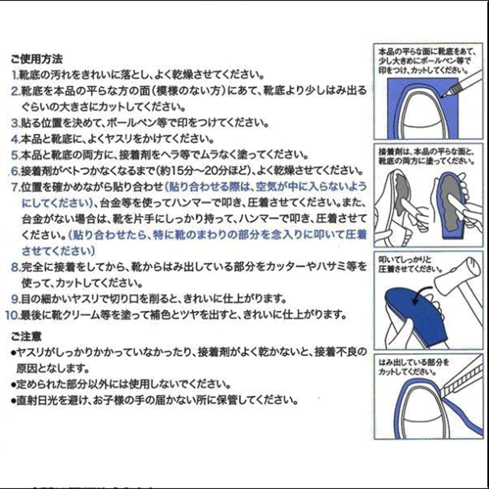 ビブラム社製ラバーを使った靴底補修用の半張り(つま先側)シートです。 耐久性に優れた合成ゴムを使用。 カットや貼り合わせ加工がしやすい硬さです。 シート表面に施された模様は滑りにくくなっています。 厚み:約2mm 入数:1足(2枚)