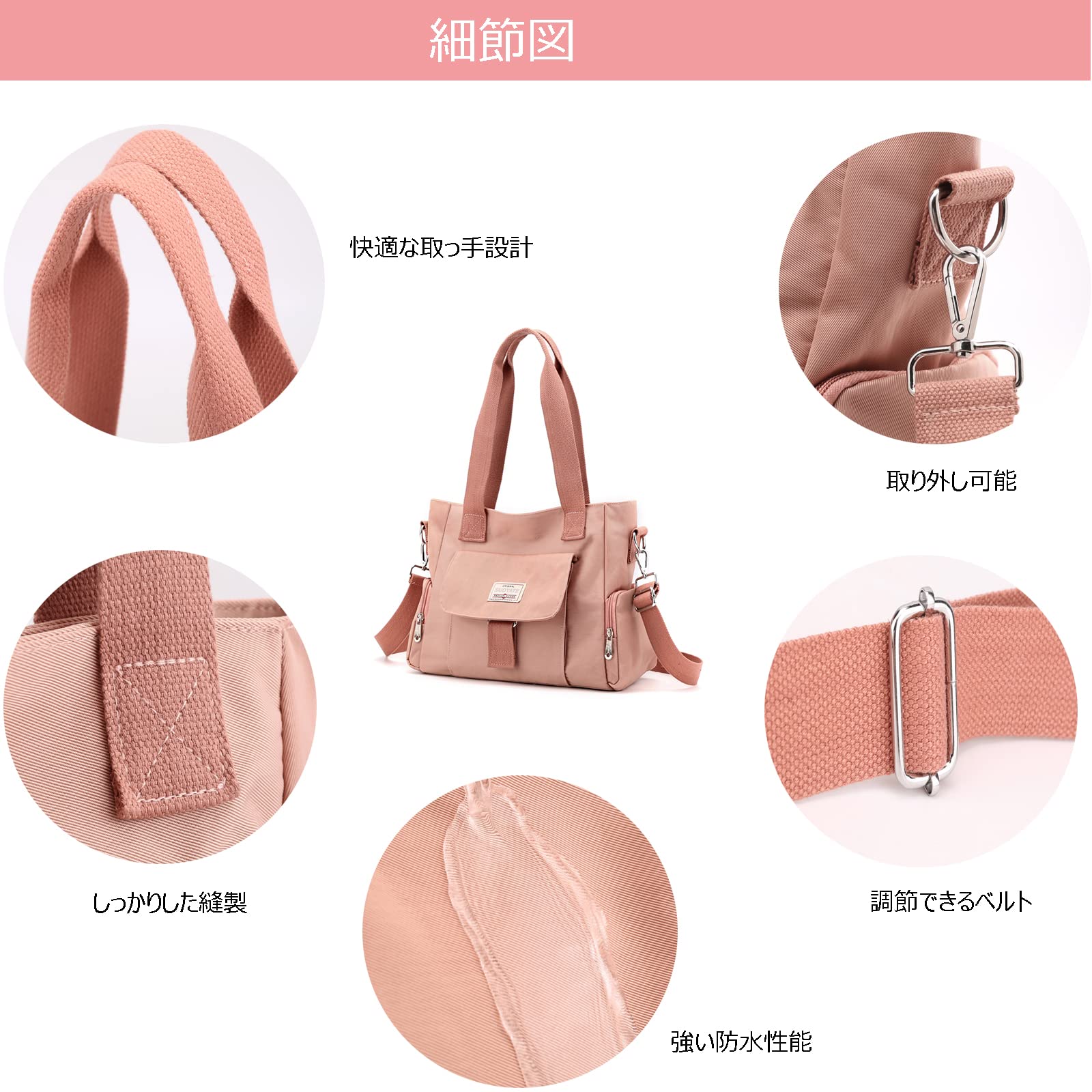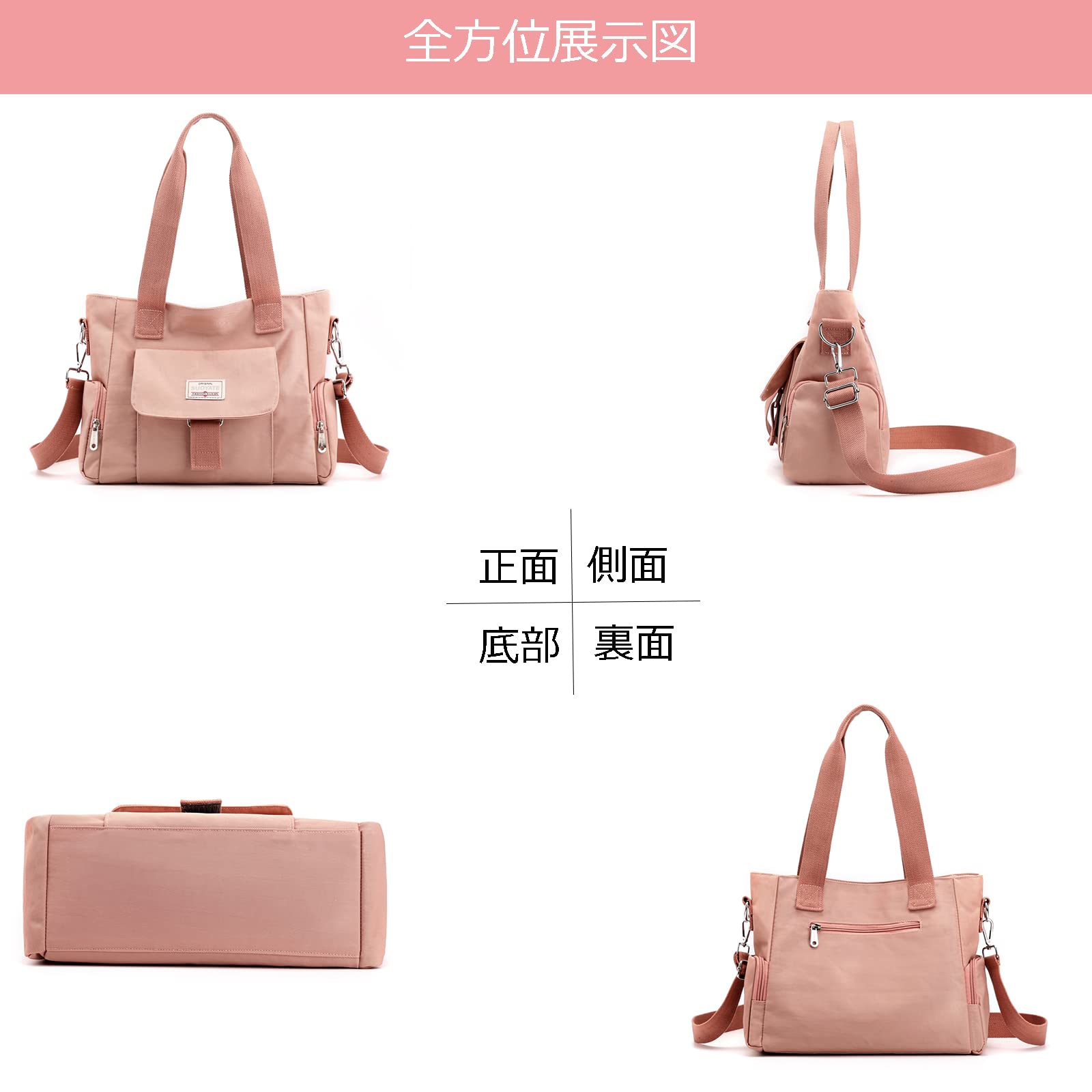 ?3way使える:手提げ、斜めがけ、ワンショルダーも適用します。付属のショルダーベルトは外し可能で、お好みによる調整できます