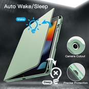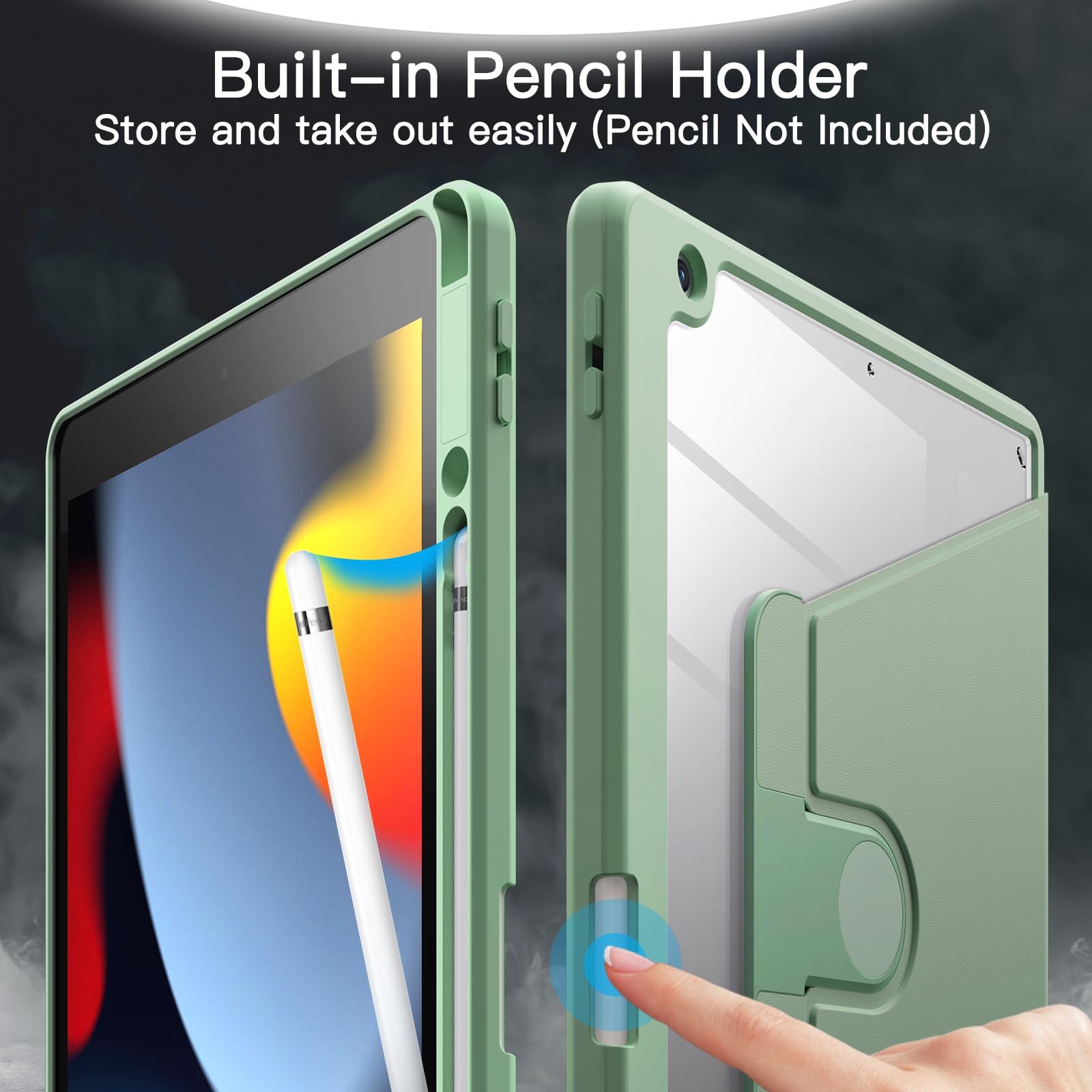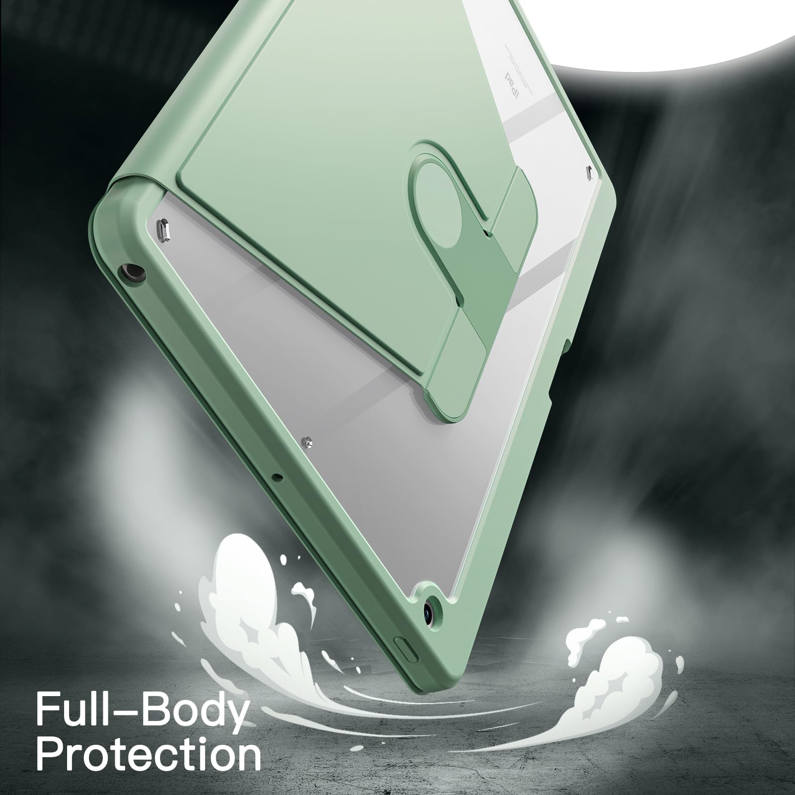 JETech 回転ケース iPad 9/8/7 (10.2インチ、2021/2020/2019モデル、第9/8/7世代用) Pencilホルダー付き 360°保護 スタンドカバー クリアバック 自動ウェイク/スリープ (抹茶グリーン)