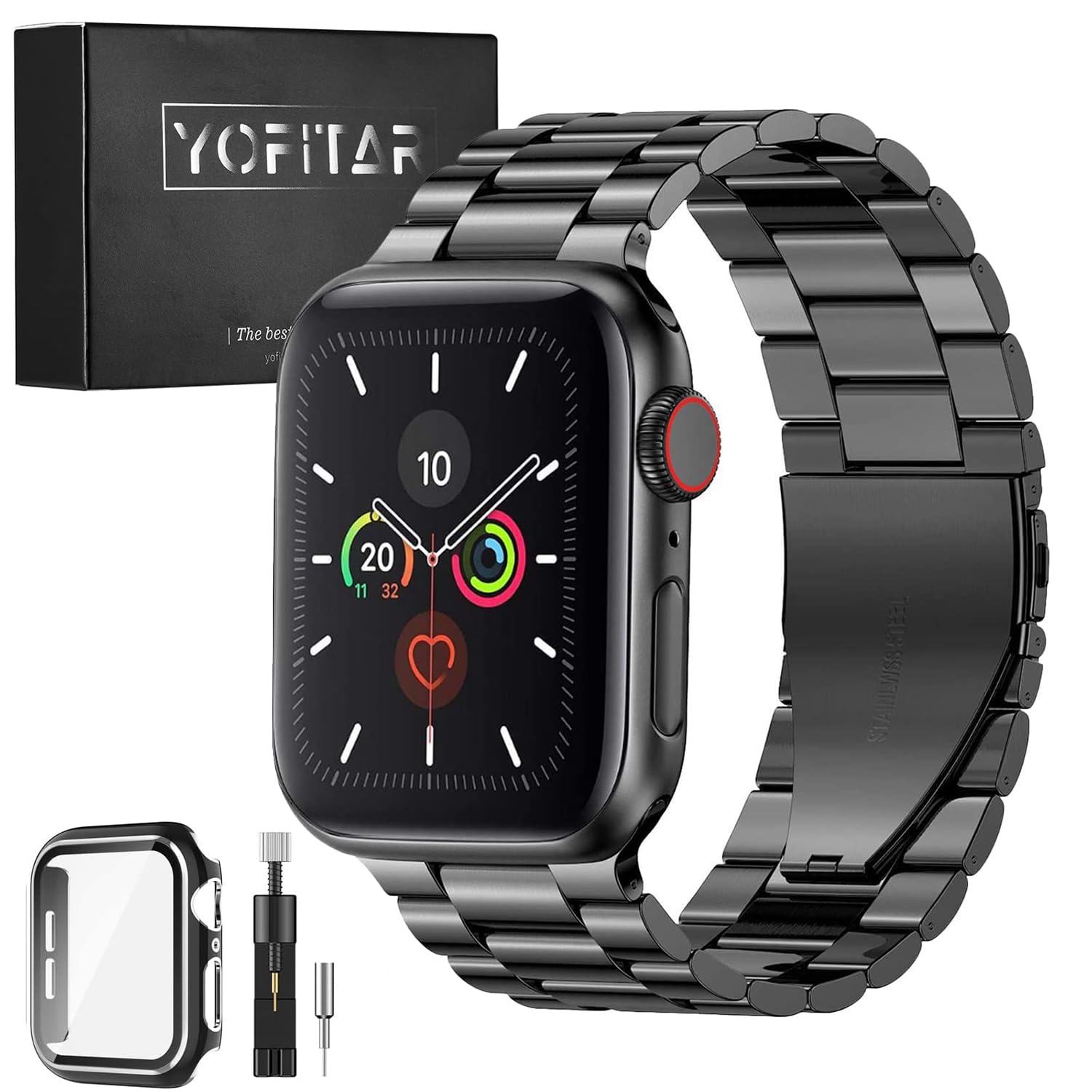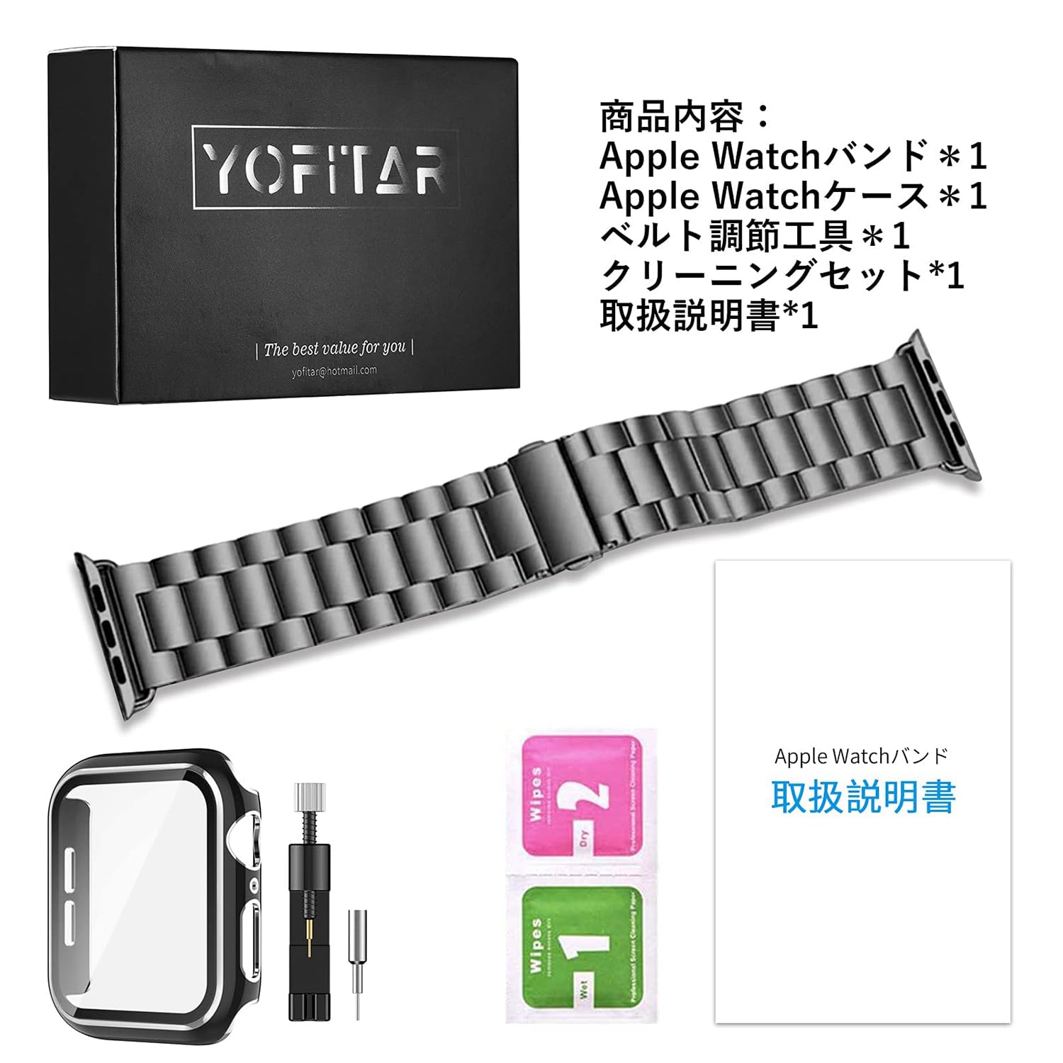 [YOFITAR] for Apple Watch バンド 保護ケース付き ステンレス製 アップルウォッチ 交換ベルト Apple Watch Ultra 2/Ultra/10/9/8/7/SE2/6/SE/5/4/3/2/1対応 iWatch バンド Apple Watchアクセサリ 長さ調整器具付き(40mm,ブラックとシルバー)