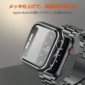 【Apple Watch保護カバー+Apple Watchバンド】Apple Watchにぴったりフィットするケースと交換バンド一体化ステンレスバンドです。ほとんどの時計で採用されている3連タイプで、金属ブレスとしては一番オーソドックスなタイプになります。横9列になったコマを縦に繋ぎ合わせたブレスレットで、高い堅牢性が特徴です。