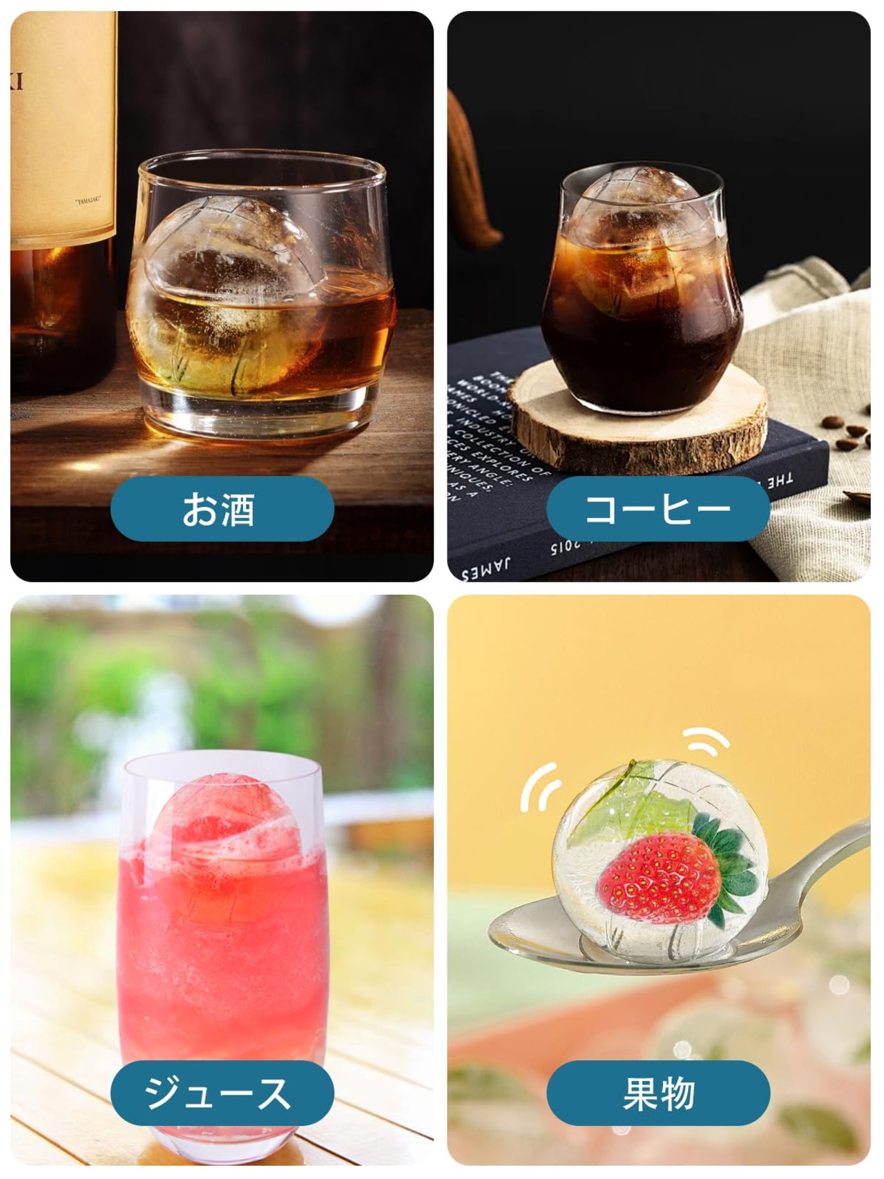 【多機能製氷皿】ウィスキーやカクテル等のお酒は勿論、ジュース、お茶、牛乳、アイスクリーム、ヨーグルト等を製氷皿に入れて凍らせて、自分らしい飲み物が作れます。家庭用品としてはもちろん、バー、クラブー、レストラン等ビジネスの場合も出番は多いです♪夏場だけではなく、通年使いアイテムとなります。