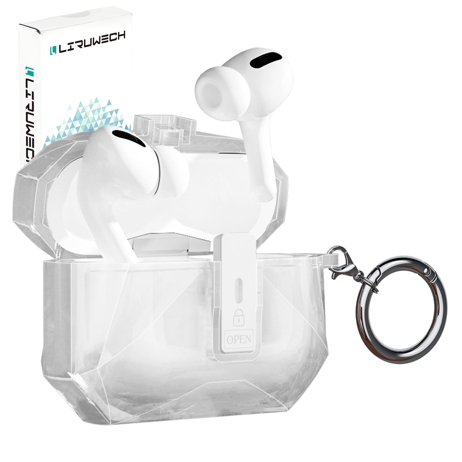 For AirPods Pro 2/Airpods Pro ケース(2024/2023/2022/2019) クリア エアーポッズ プロ 第2世代用TPUケース 磁気ロック設計 厚さ4.5mm 全面保護カバー 落下防止 耐衝撃 防塵 装着充電可能 防水 カラビナ付き 透明