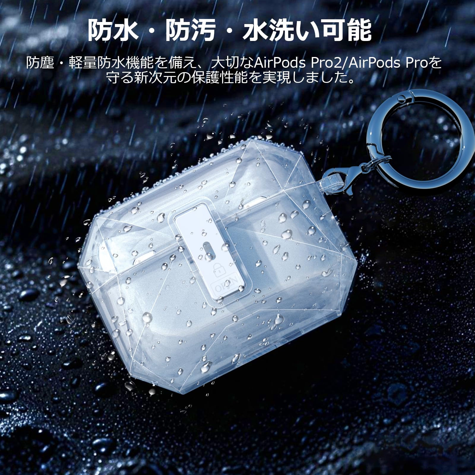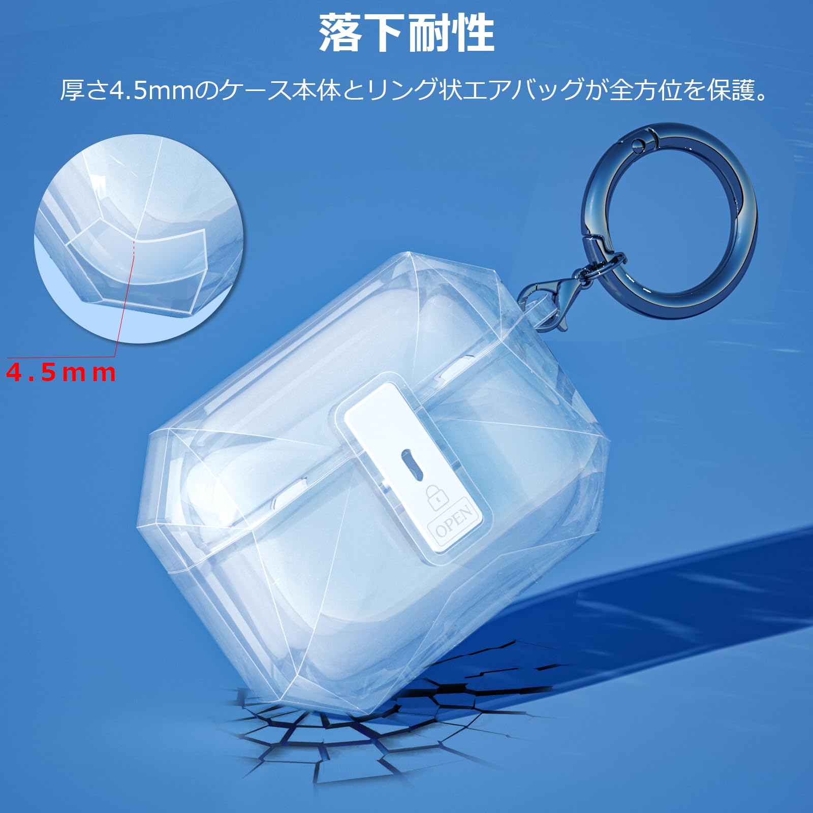 【透明度の高いクリア質感】独自開発のポリウレタン弾性材質を使用し、ダイヤモンドのように透き通った輝きを実現。AirPods Pro2/AirPods Proを守りながら、本体を宝石のように際立たせます。高品質で黄ばみに強い!変色も黄ばみも有効に抑制する上に、透明感も溢れます。