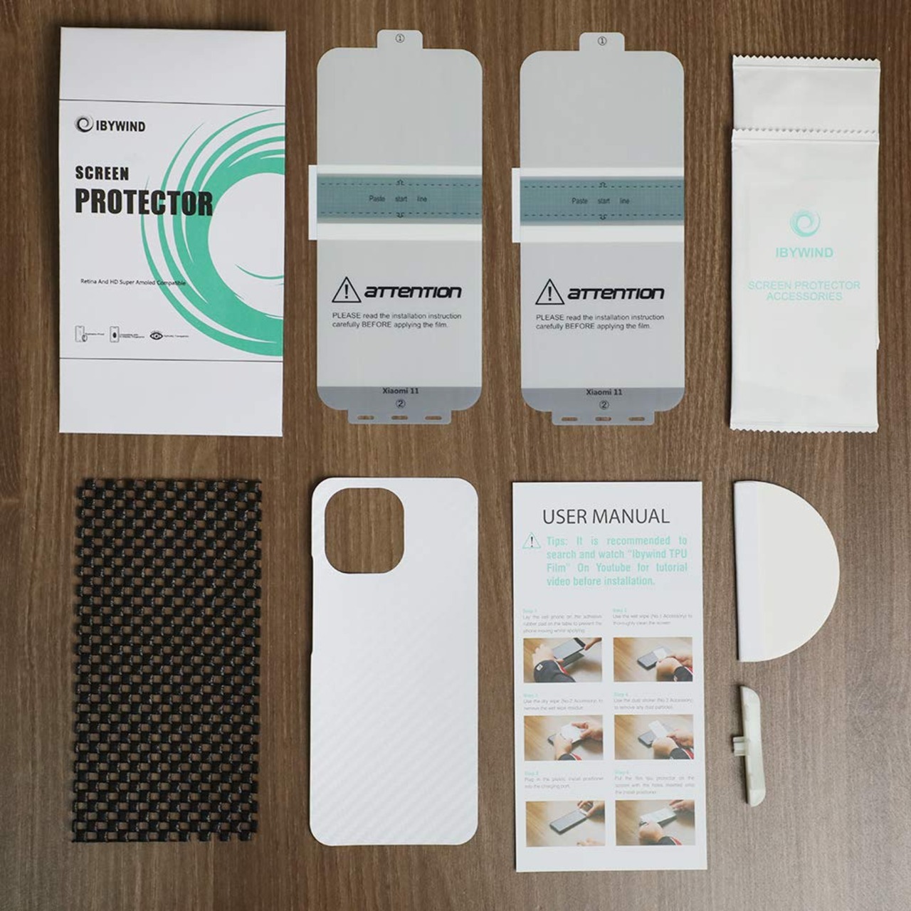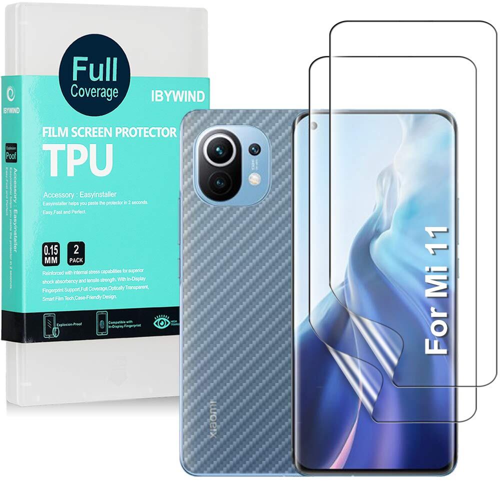 Ibywind Xiaomi Mi 11 5G 専用保護フィルム2枚入り カメラレンズプロテクター付き(金属材料) 背面保護フィルム付き 指紋認証対応 気泡な