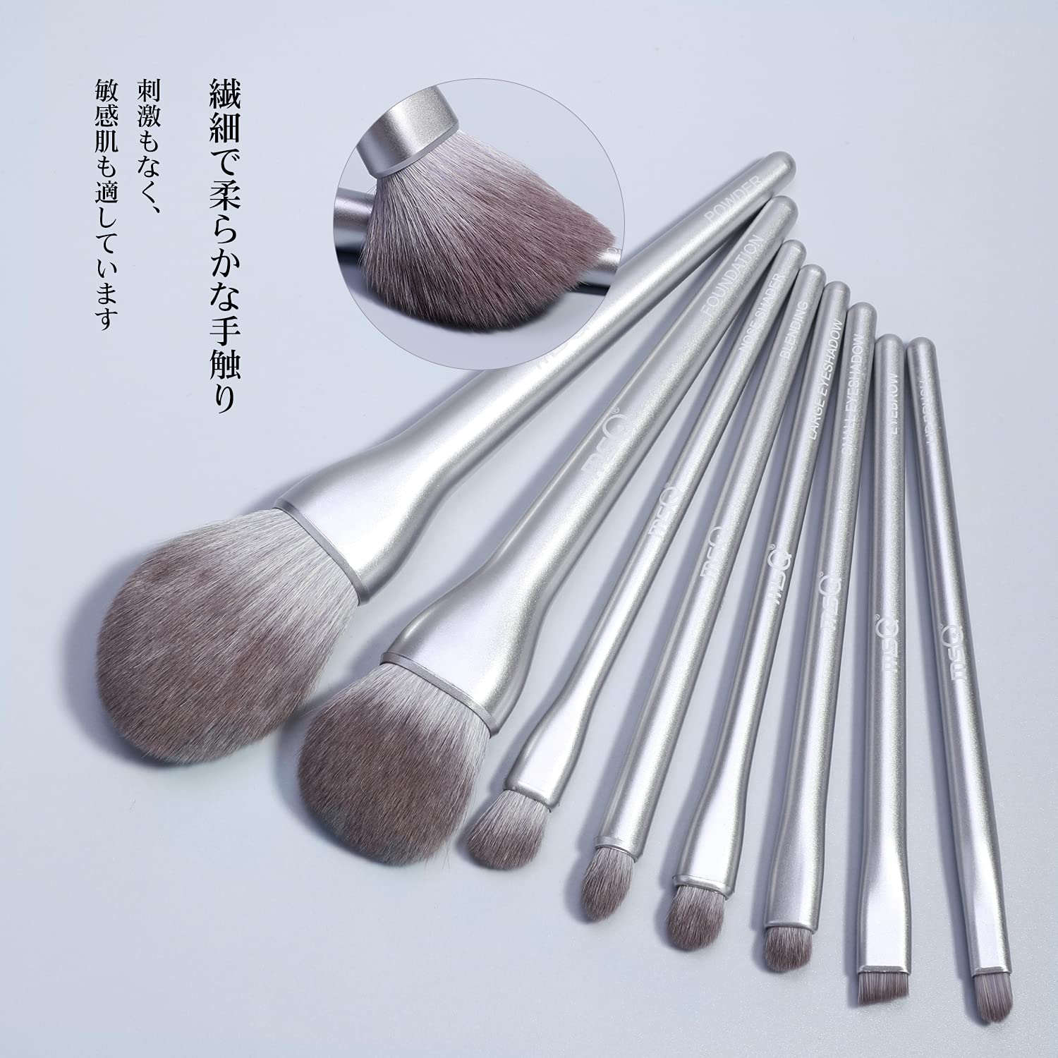 MSQ メイク ブラシ 8本セット 人気 化粧筆セット 高級繊維毛 超柔らかい 日常の化粧 携帯便利 母の日ギフト 敏感肌適用(ピンクボックスシルバーブラシ)