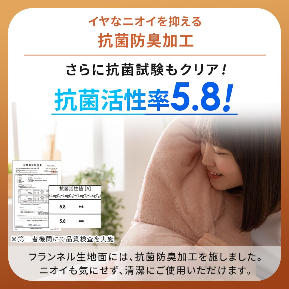 材質/表地:ポリエステル100% 85g/m2(ピーチスキン加工)、詰め物(重量:1.5kg)、上層部:ポリエステル100%、下層部:ポリエステル100%(シンサレート高機能中綿素材)
