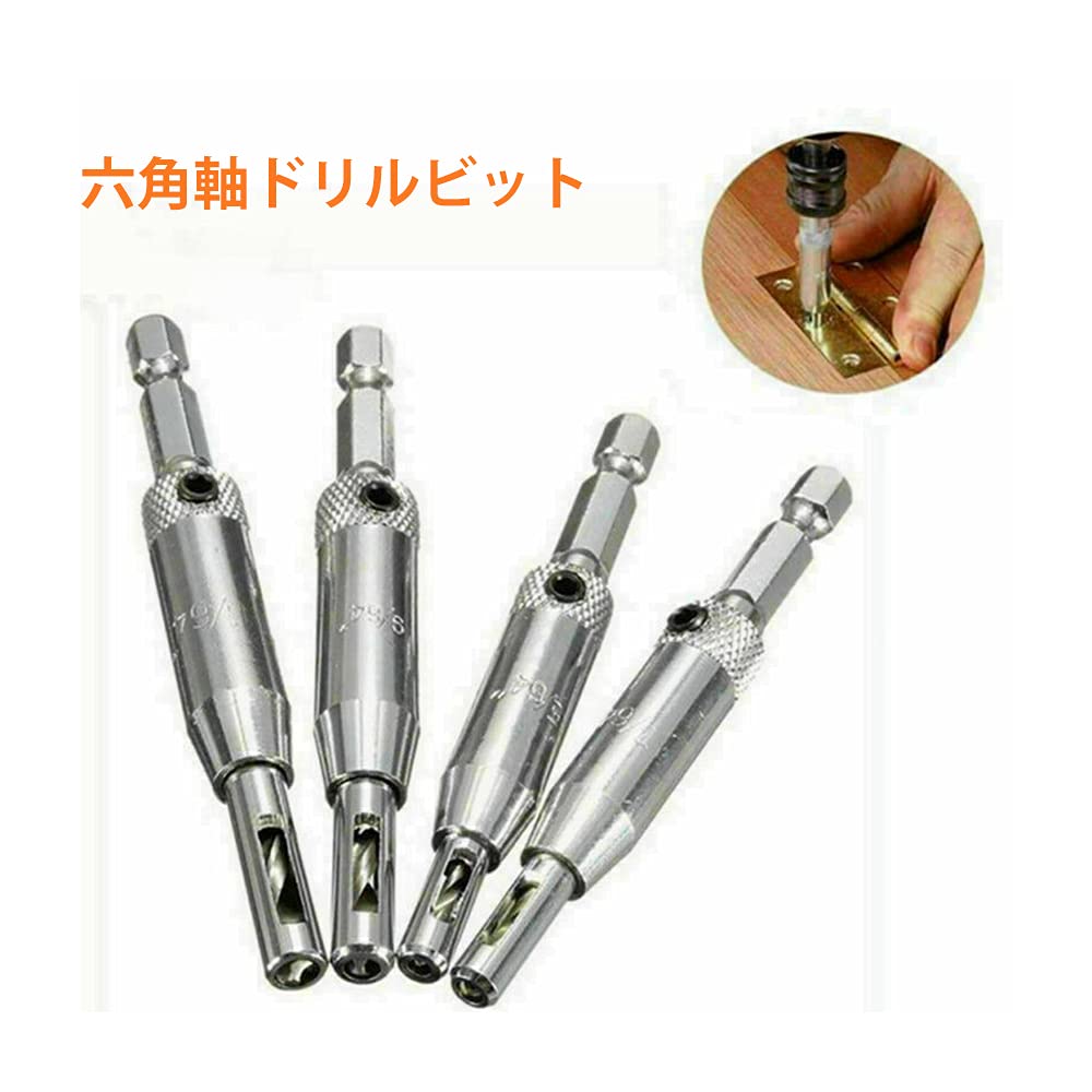 Dophee センタードリルビット センター出し用 ヒンジ蝶番 木工用 穴あけ 六角軸ドリルビット ドリルガイド4本セット