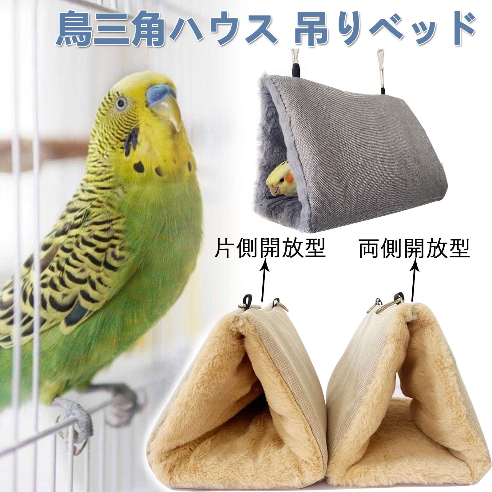 【新着】鳥たちの寝床 三角ハウス インコ おもちゃ 掛ける鳥の巣 ハンモック ペット 用 テント いんこおもちゃ かわいい 寝袋 無地 厚みふわふわ 暖かい Cave Bed 遊び場 保温 寒さ対策 鳥の おもちゃ 鳥用品 文鳥 鸚鵡 小動物 ハウス 冬 フックとチェーン付き 両側開放型-S ベージュ | GIGATERA
