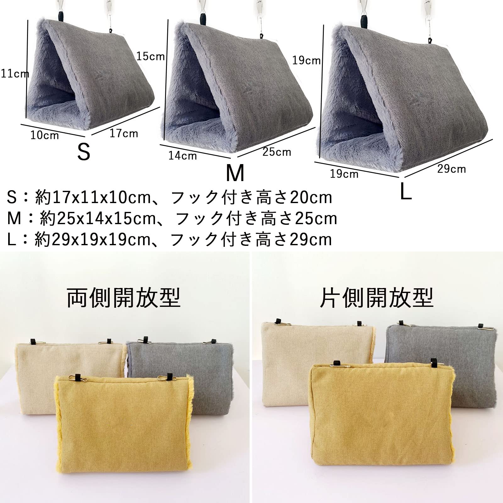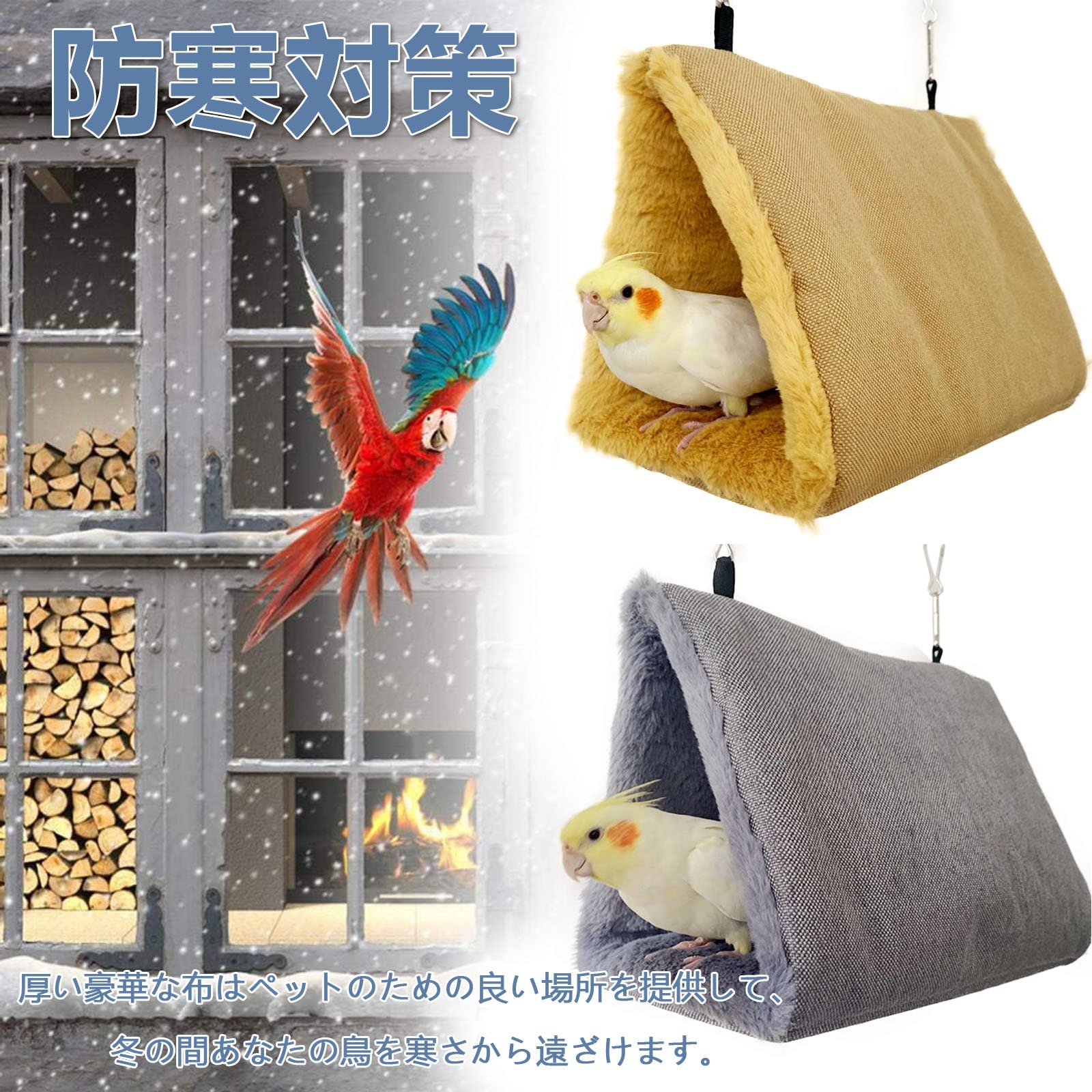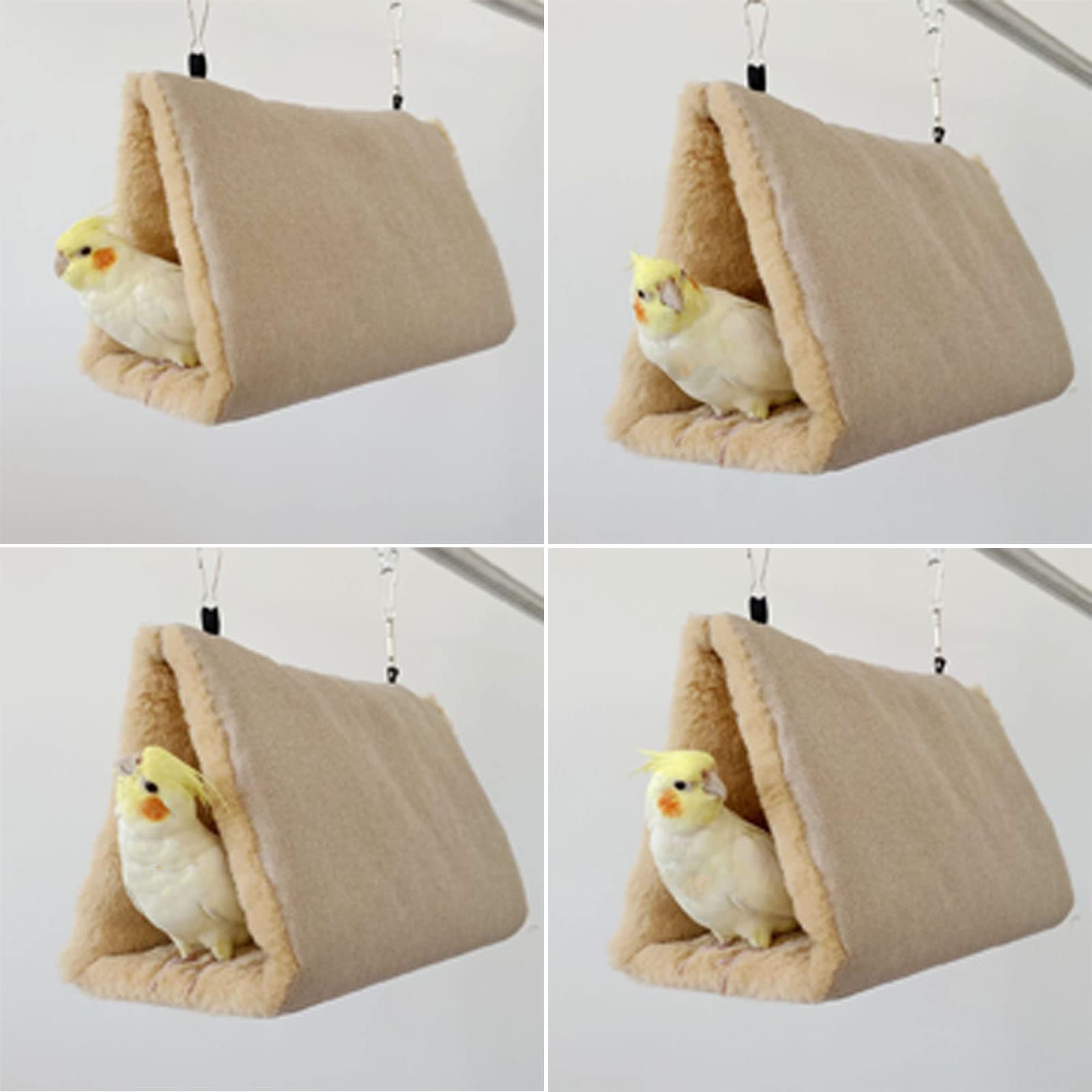 鳥たちの寝床 三角ハウス インコ おもちゃ 掛ける鳥の巣 ハンモック ペット 用 テント いんこおもちゃ かわいい 寝袋 無地 厚みふわふわ 暖かい Cave Bed 遊び場 保温 寒さ対策 鳥の おもちゃ 鳥用品 文鳥 鸚鵡 小動物 ハウス 冬 フックとチェーン付き 両側開放型-S ベージュ