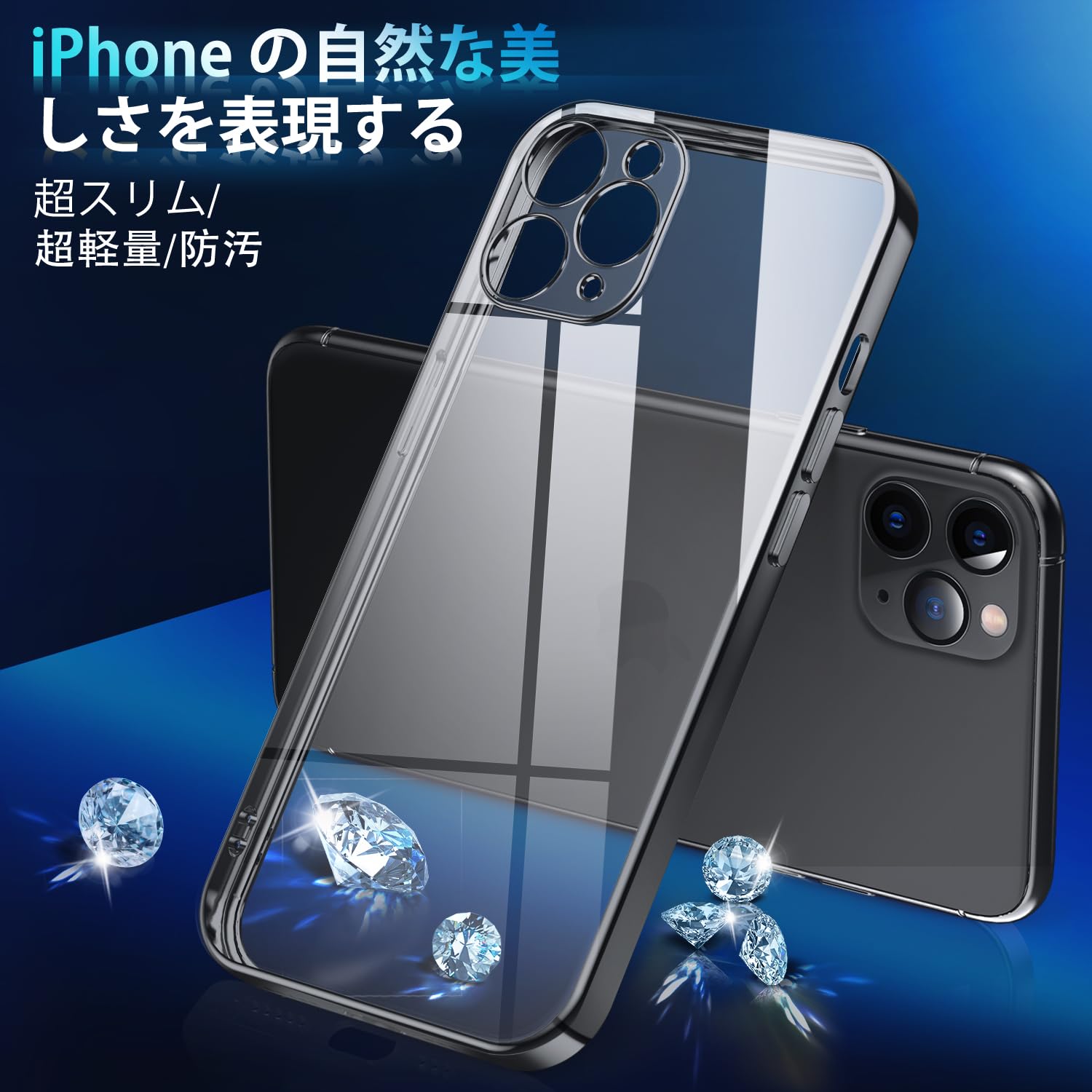 【新着】Supdeal クリスタル クリアな電話ケース対応iPhone 11 Pro,[カメラレンズ保護][シリコン高精細透明][黄変しない][極薄でソフトな素肌感覚][耐衝撃]アイフォン 11 プロスマホカバー衝突防止エアバッグ付き,5.8インチ(ブラック) | GIGATERA