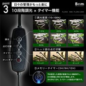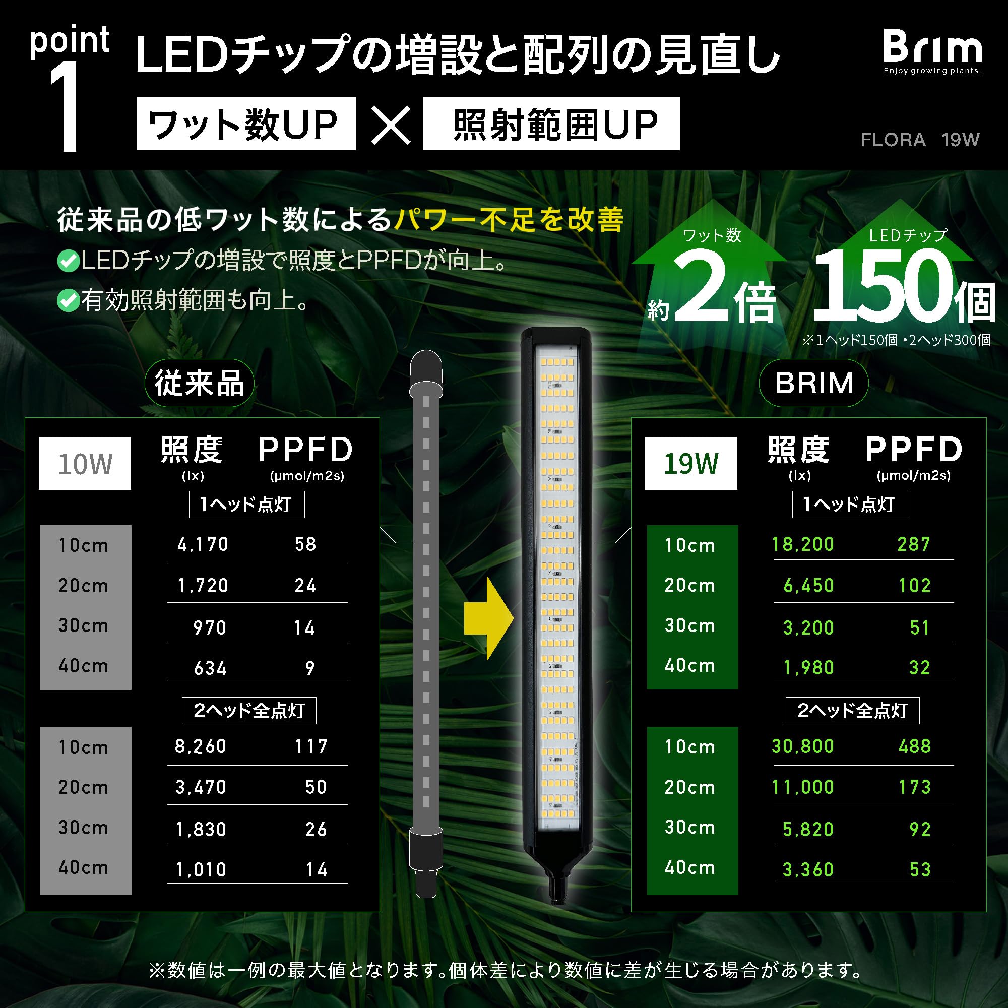 【公式】BRIM(ブリム) FLORA 植物育成ライト LED 【国内ブランド】調光 タイマー フルスペクトル 19W 4000K-4500K (2ヘッド, BK 白色系)