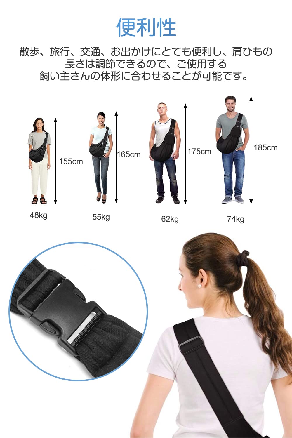 【便利性】散歩、旅行、交通、お出かけにとても便利し、肩ひもの長さは調節できるので、ご使用する飼い主さんの体形に合わせることが可能です。
