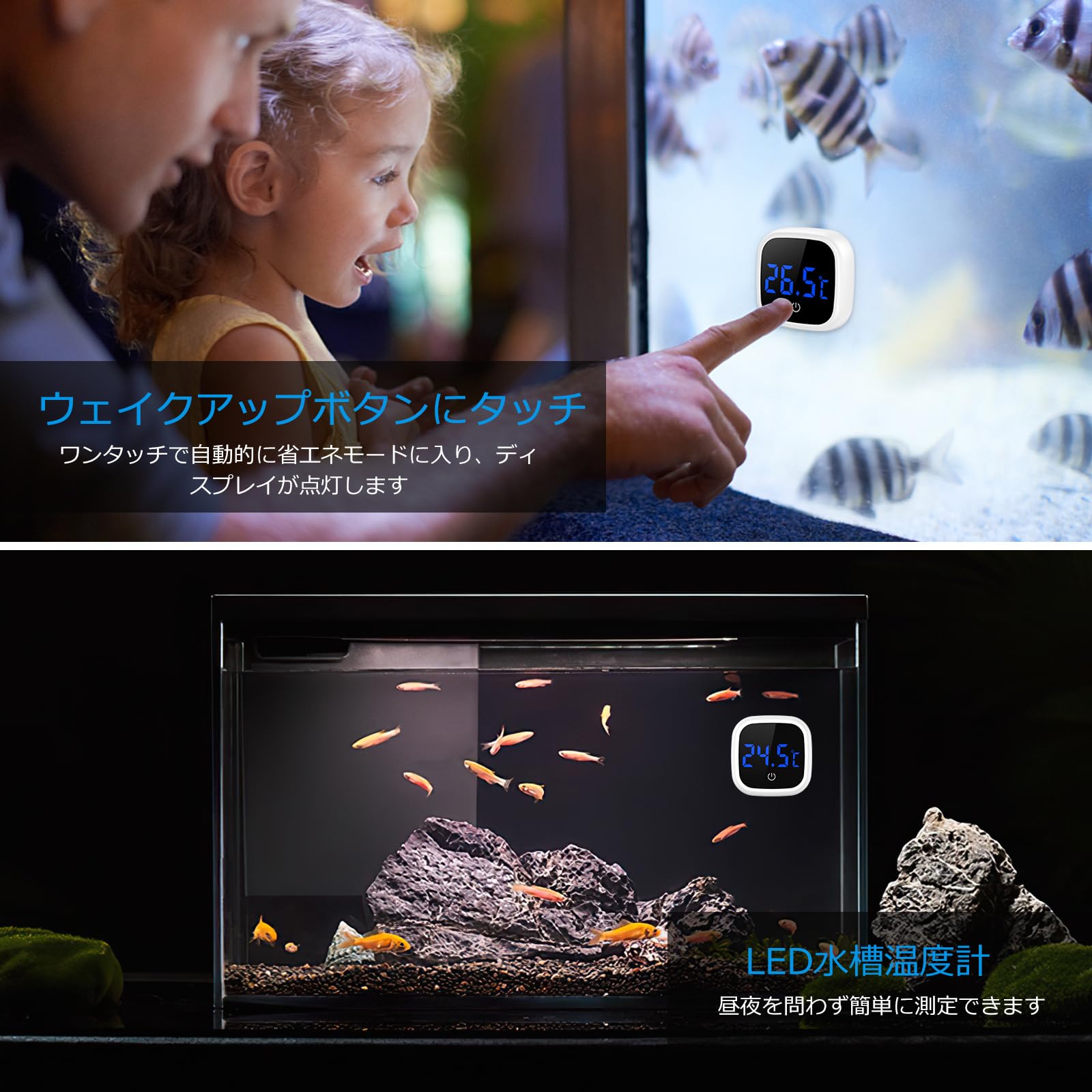 AMIR デジタル水槽温度計 LED タッチスクリーン付き 2セット