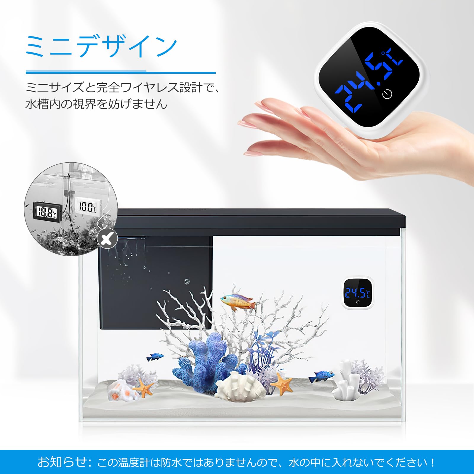 【高精度測定センサー】温度測定センサーを使用し、当社の水槽温度測定範囲は0℃~60℃であり、使用するために異なる水温を満たすことができ、精度は0.1℃、誤差±0.5℃、5秒ごとにリフレッシュレートは、より速く温度変化を検出することができます。